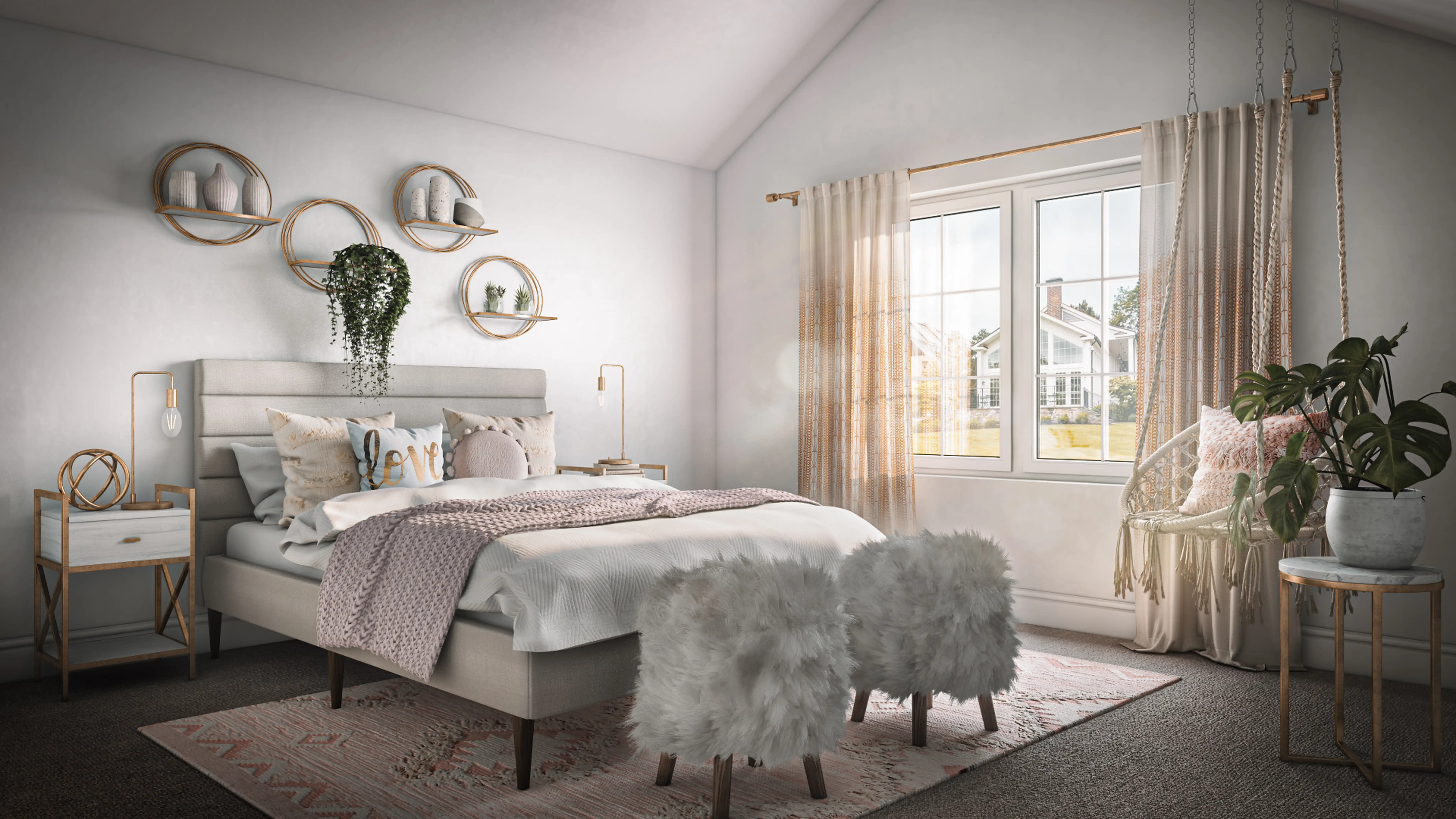 For this Bedroom, Fendy selected nightstands, beds, and bed frames from Wayfair. Discover Furniture design inspiration on Havenly.
