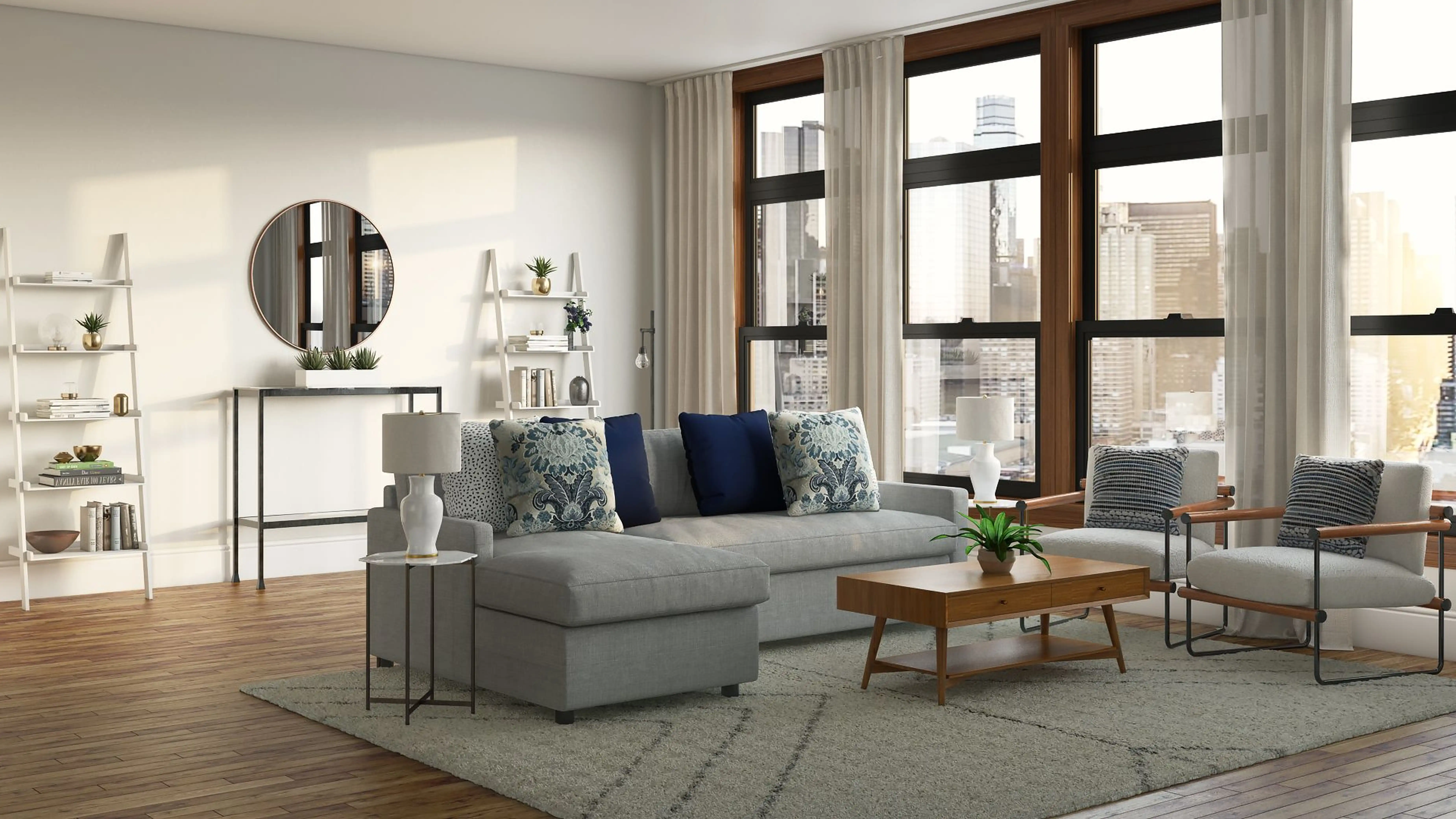 For this Living Room, Shelby selected bookcases, standing shelves, and coffee tables from Wayfair and West Elm. Discover Furniture design inspiration on Havenly.