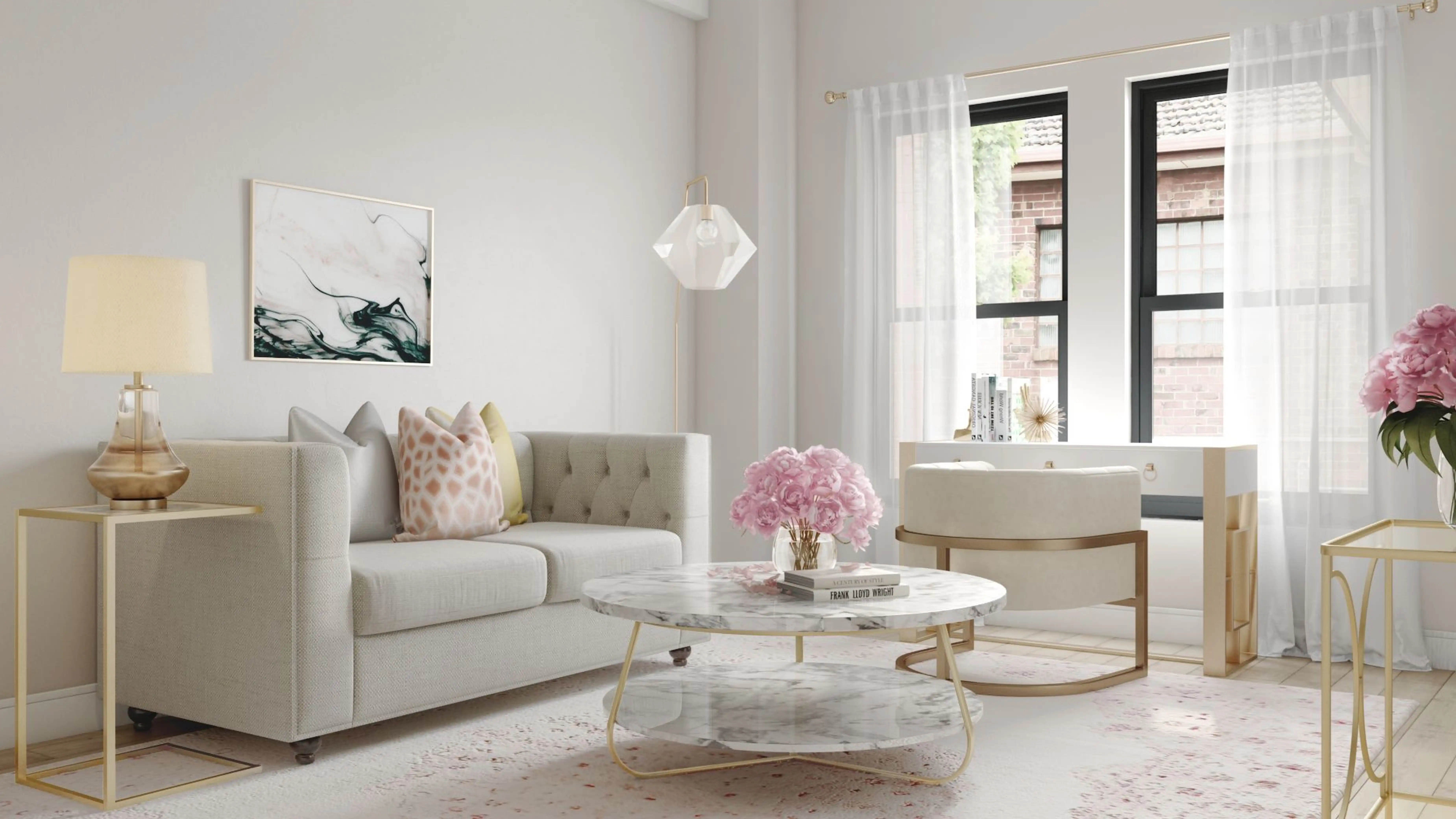 No room is complete without curtain, drape rods, and artificial flora! Mixing up metal and plastic with brass and pink helps to add the finishing touches to the room. Discover Decor & Pillow design inspiration on Havenly.