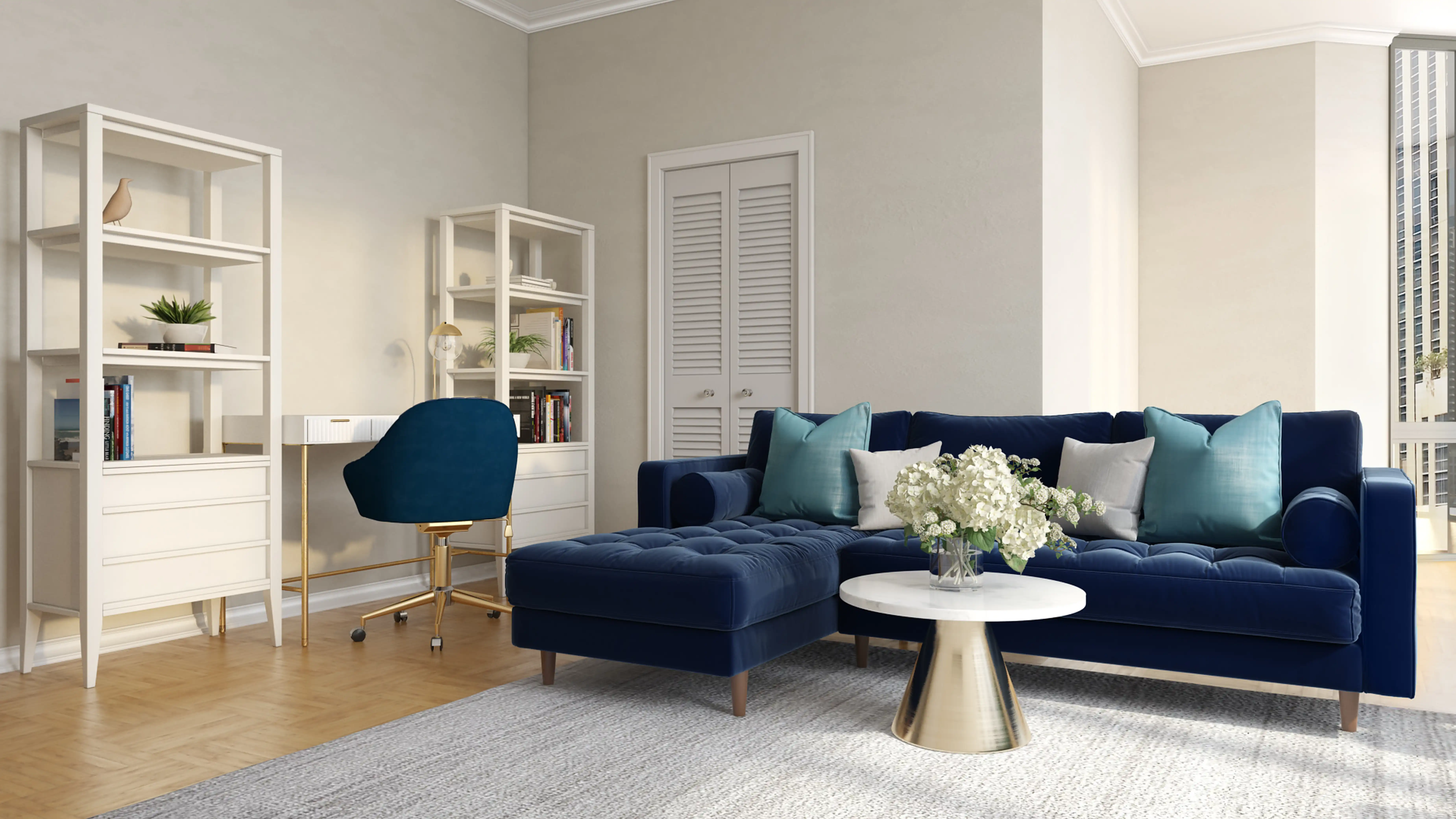 For this room, Mariela selected bookcases, standing shelves, and accent tables from Crate, Barrel, and TOV FURNITURE. Discover Furniture design inspiration on Havenly.
