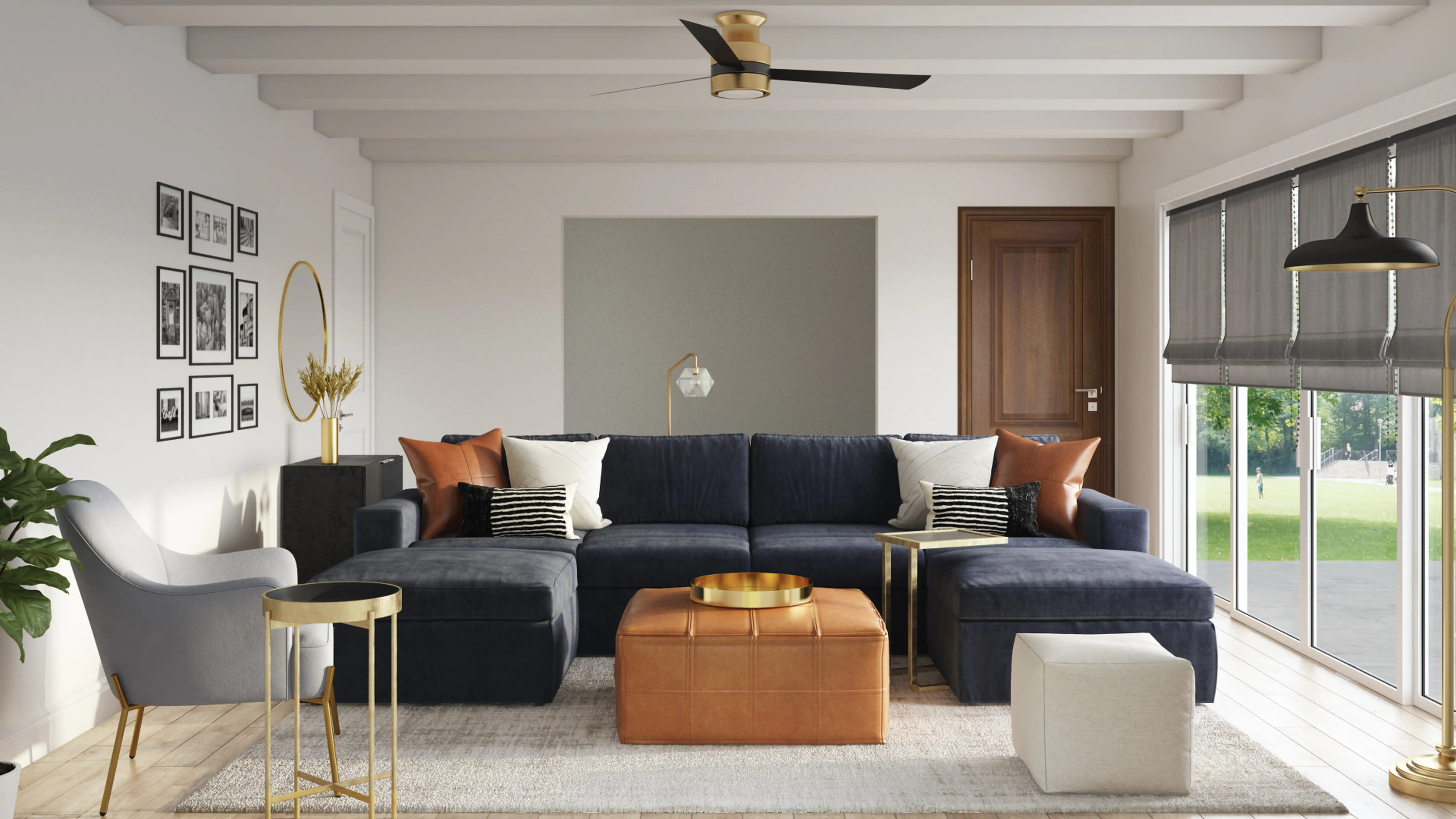 For this Living Room, Andrea selected ottomans and end tables from CB2 and Wayfair. Discover Furniture design inspiration on Havenly.