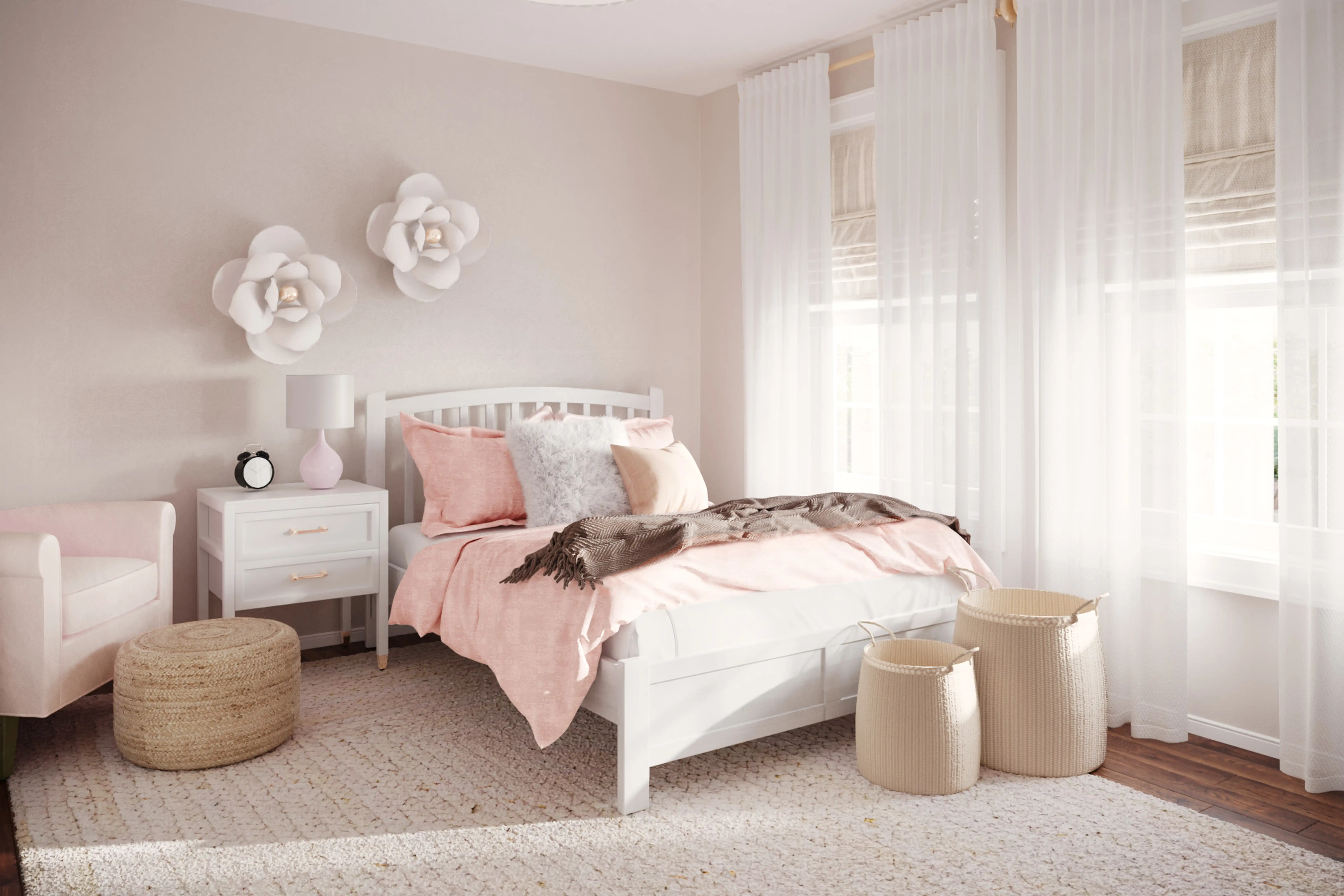 For this room, Stacy selected nightstands and poufs from Wayfair and Jaipur Living. Discover Furniture design inspiration on Havenly.