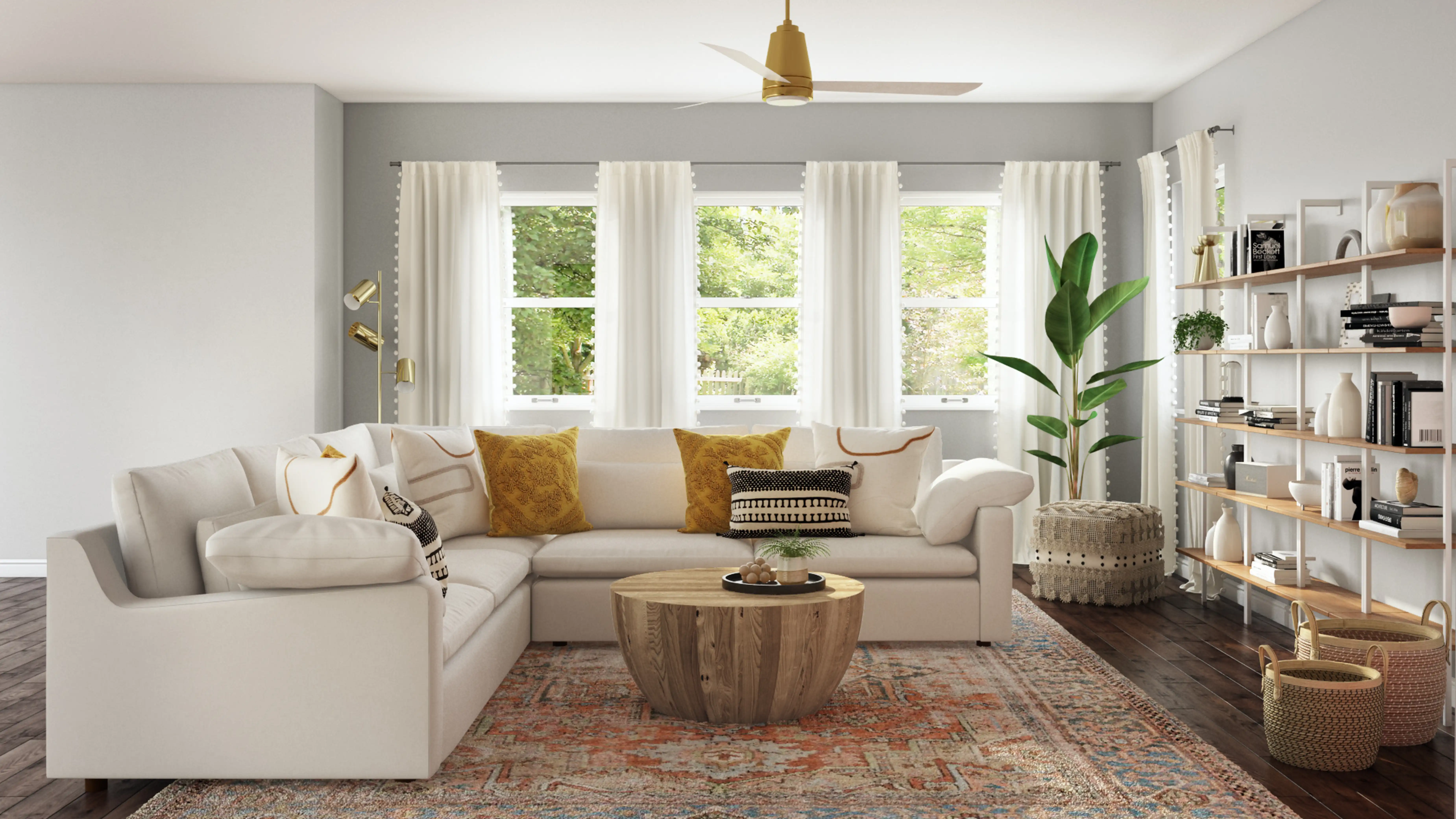To brighten the design, Bohemian lamps and ceiling light fixtures were added to the room. Discover Lighting design inspiration on Havenly.