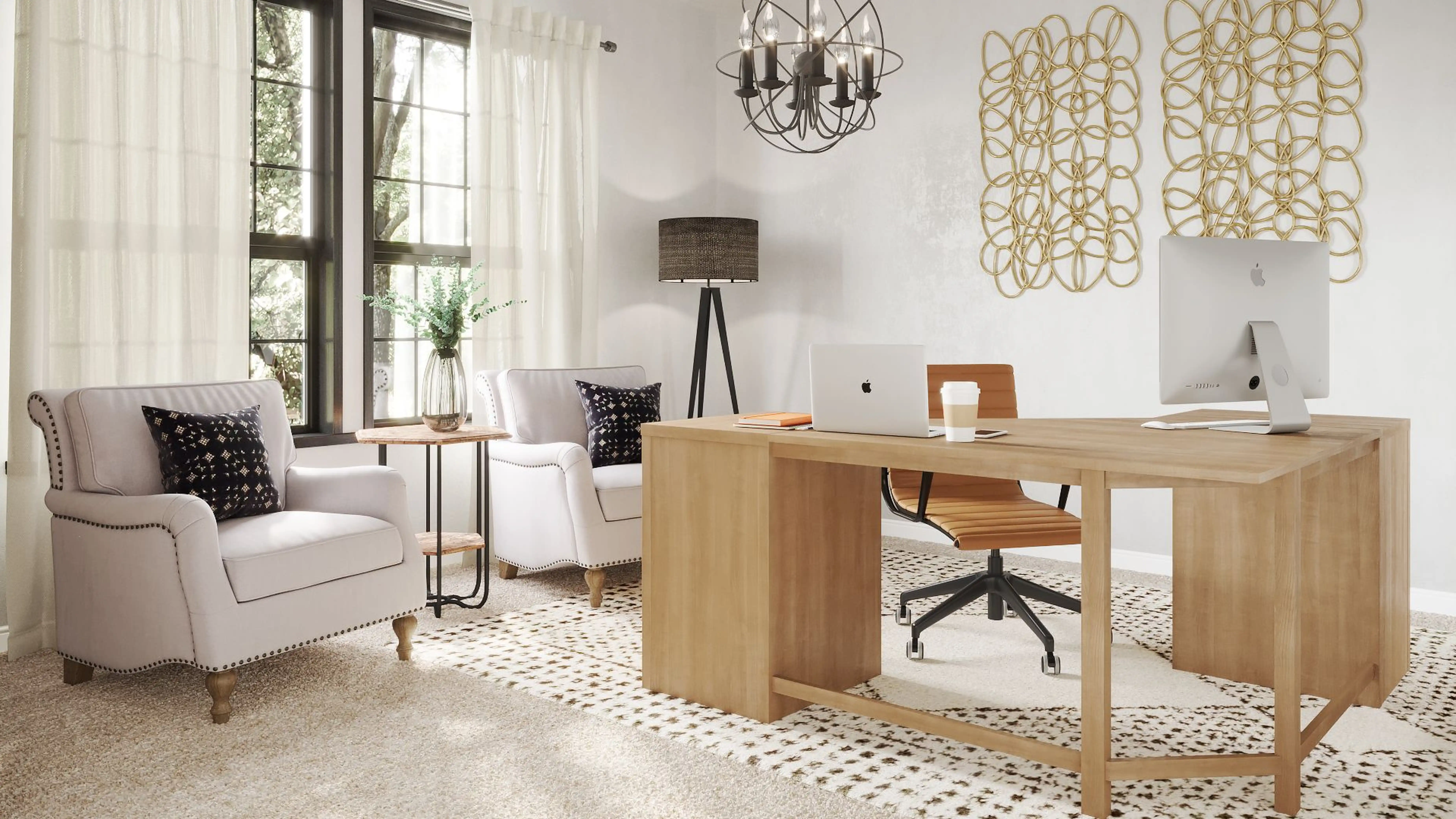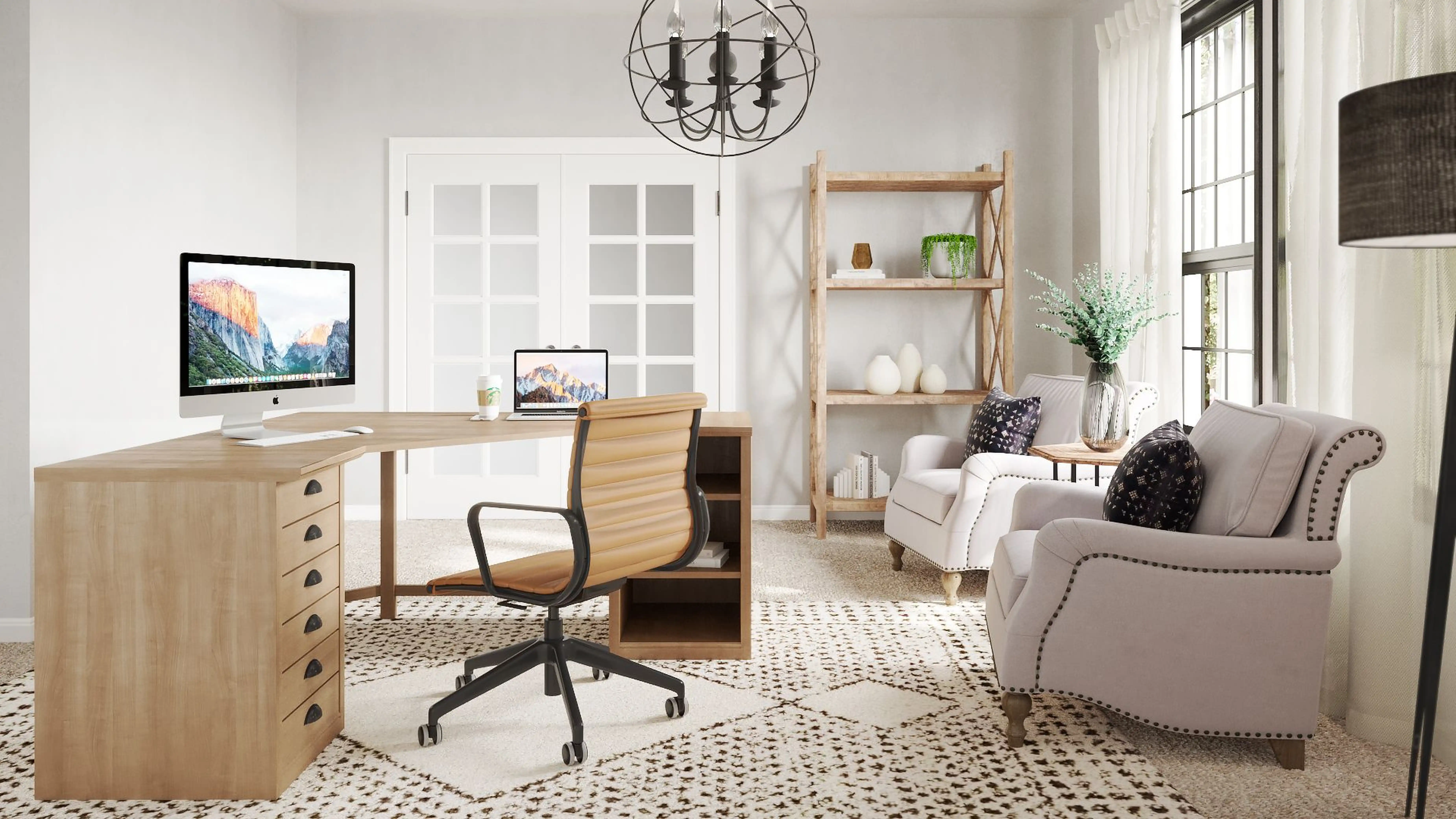 For this room, Jacqueline selected bookcases, standing shelves, and chairs from Uttermost and Pottery Barn. Discover Furniture design inspiration on Havenly.