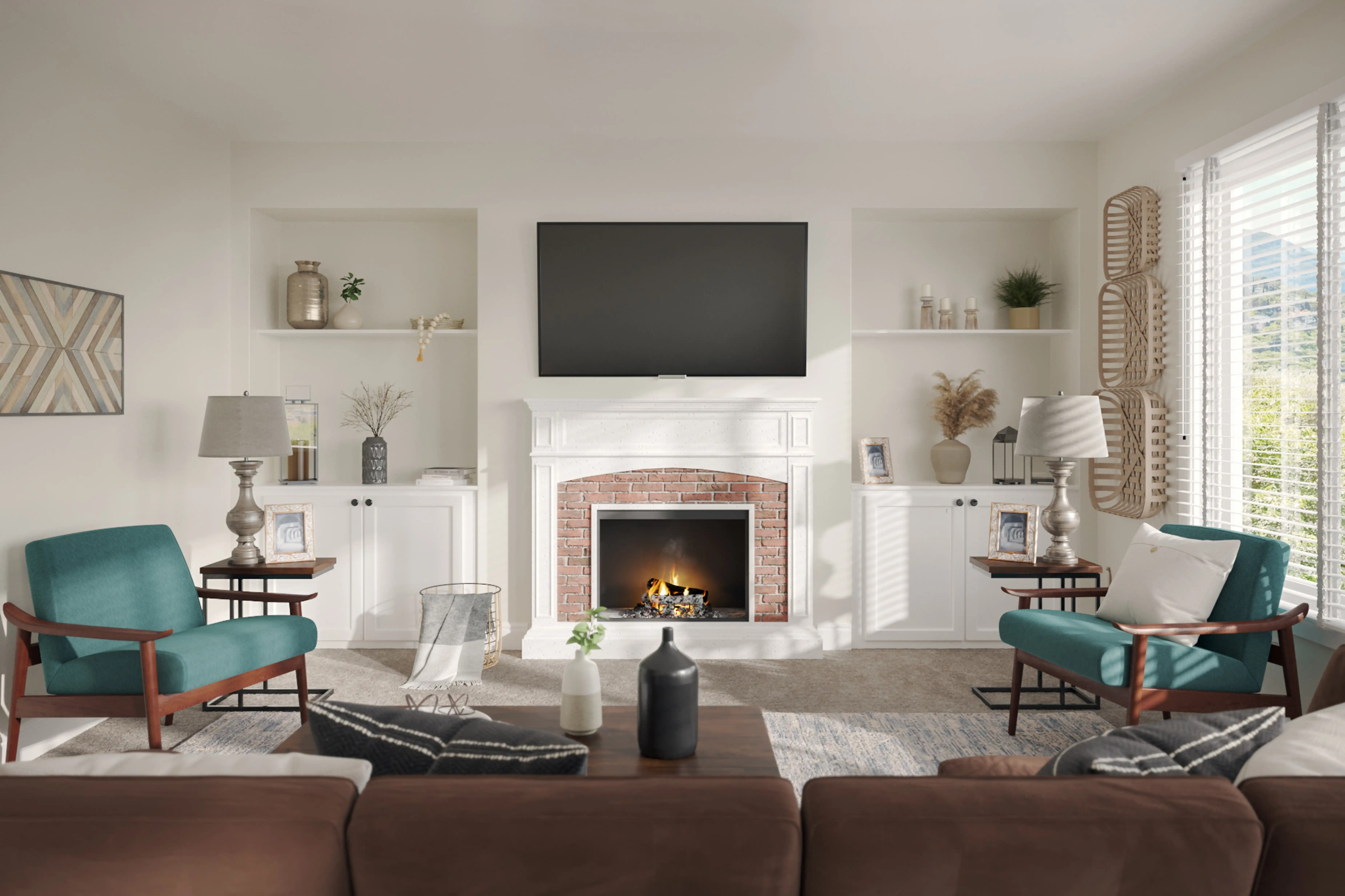 For this Living Room, Jamie selected end tables, arm chairs, recliners, and sleeper chairs from Wayfair and Haldin. Discover Furniture design inspiration on Havenly.