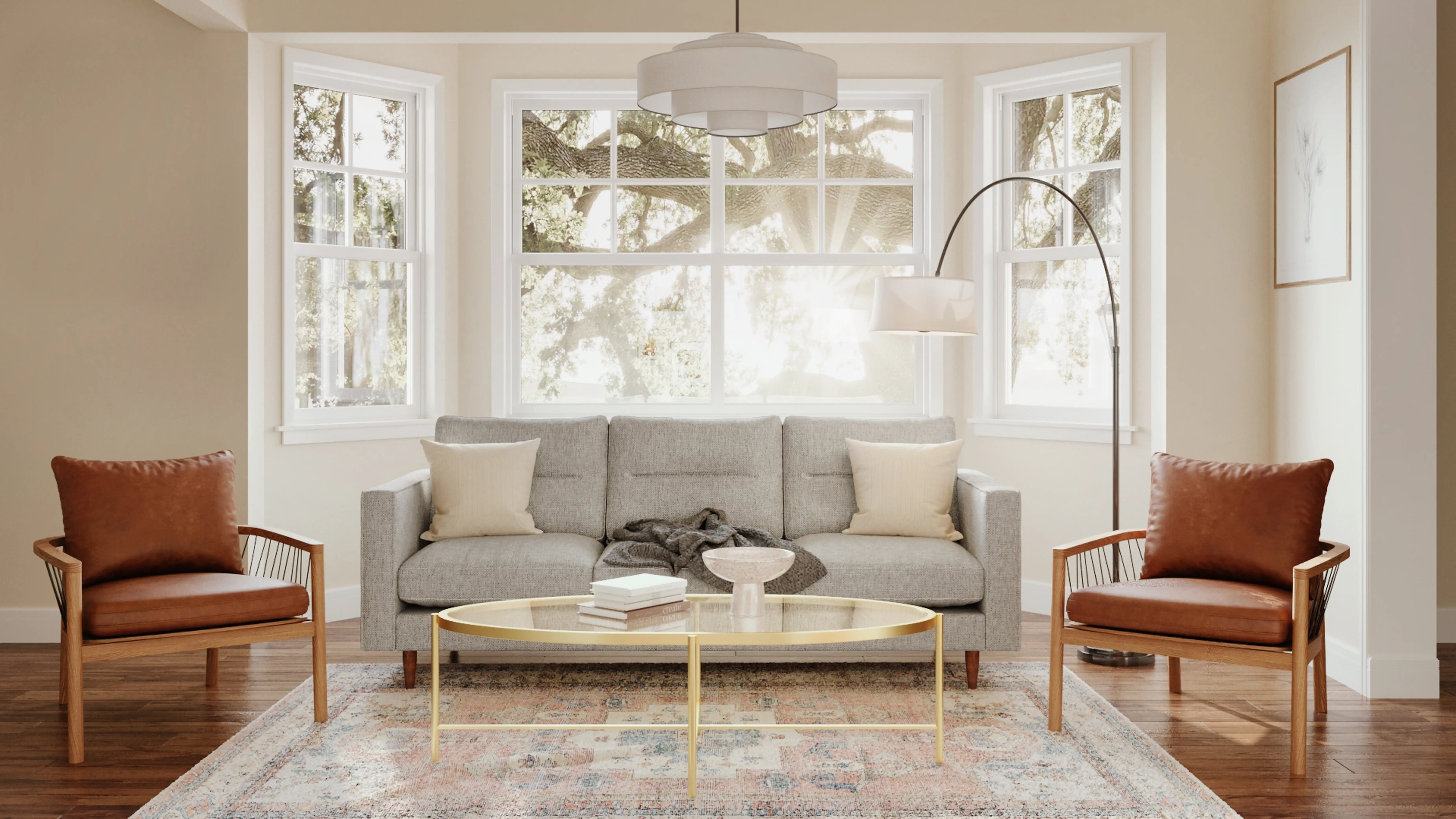 Bohemian, Global, Midcentury Modern Living Room Design by Havenly Interior Designer Logan