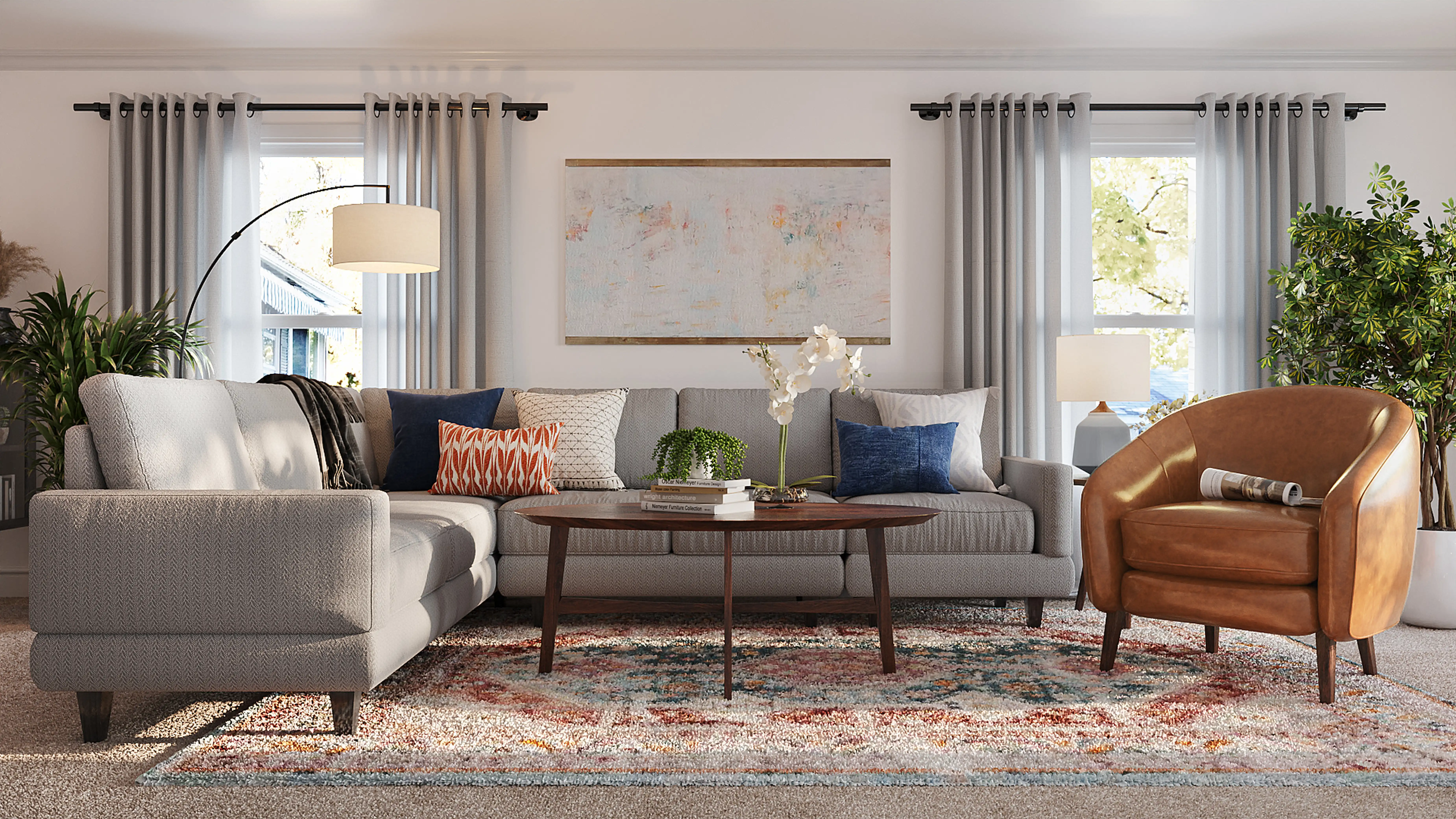 For this Living Room, Carla selected arm chairs, recliners, sleeper chairs, and end tables from West Elm and Wayfair. Discover Furniture design inspiration on Havenly.
