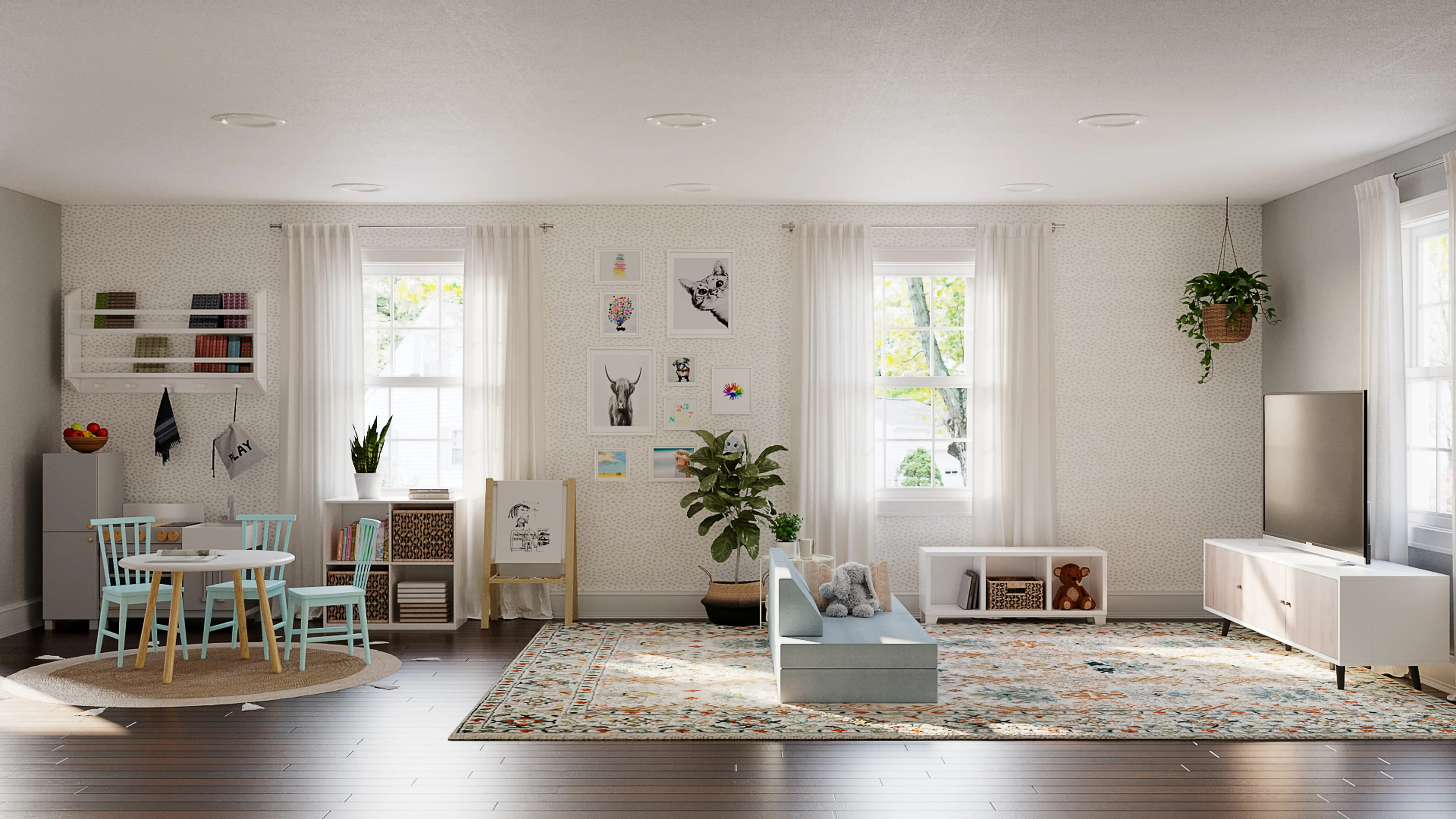 The rugs in this space from Pottery Barn Kids and Wayfair help add a variety of colors to the room. Discover Rug design inspiration on Havenly.