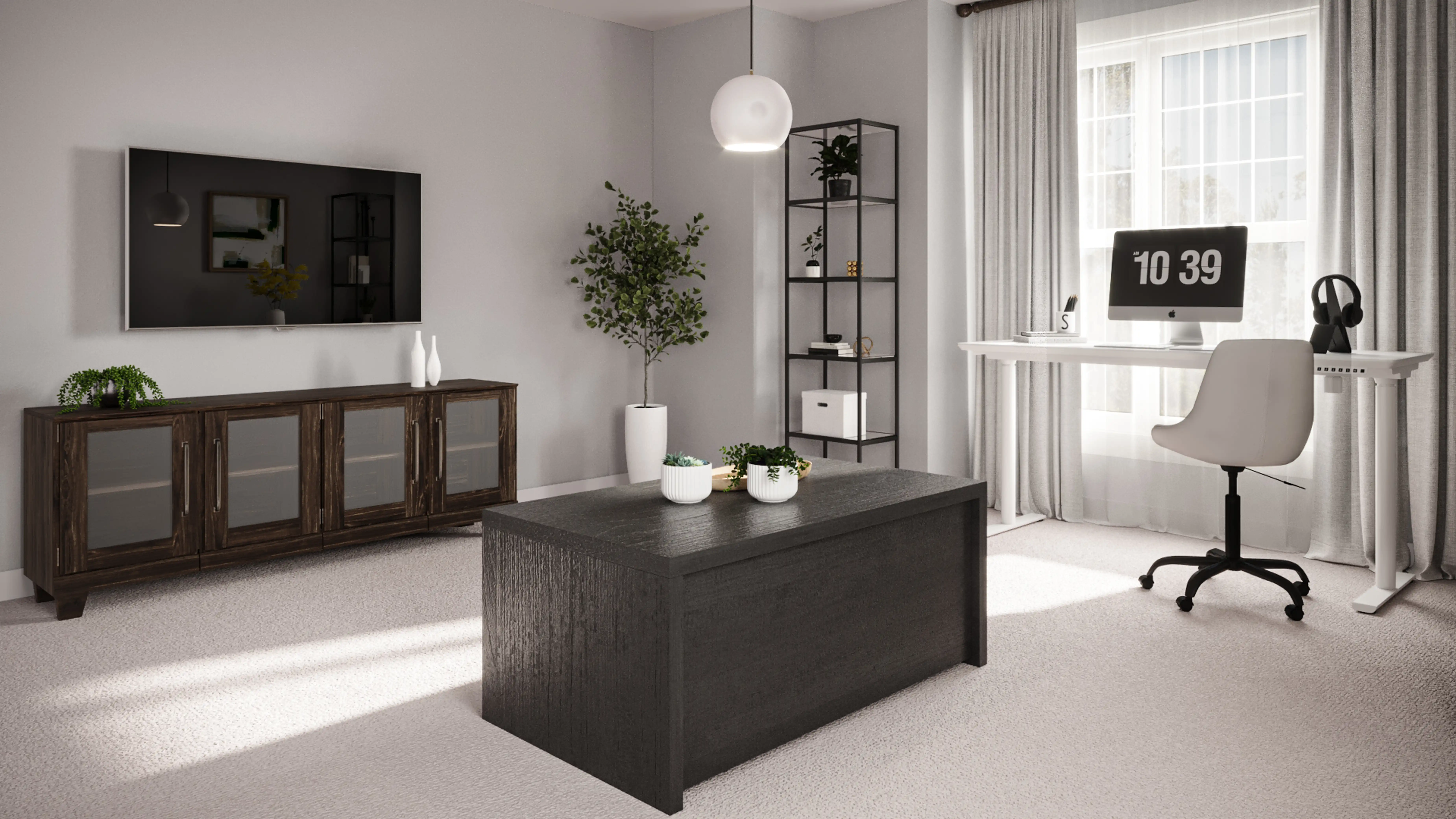 For this room, Astrid selected bookcases, standing shelves, and office chairs from Wayfair and Cove Goods. Discover Furniture design inspiration on Havenly.