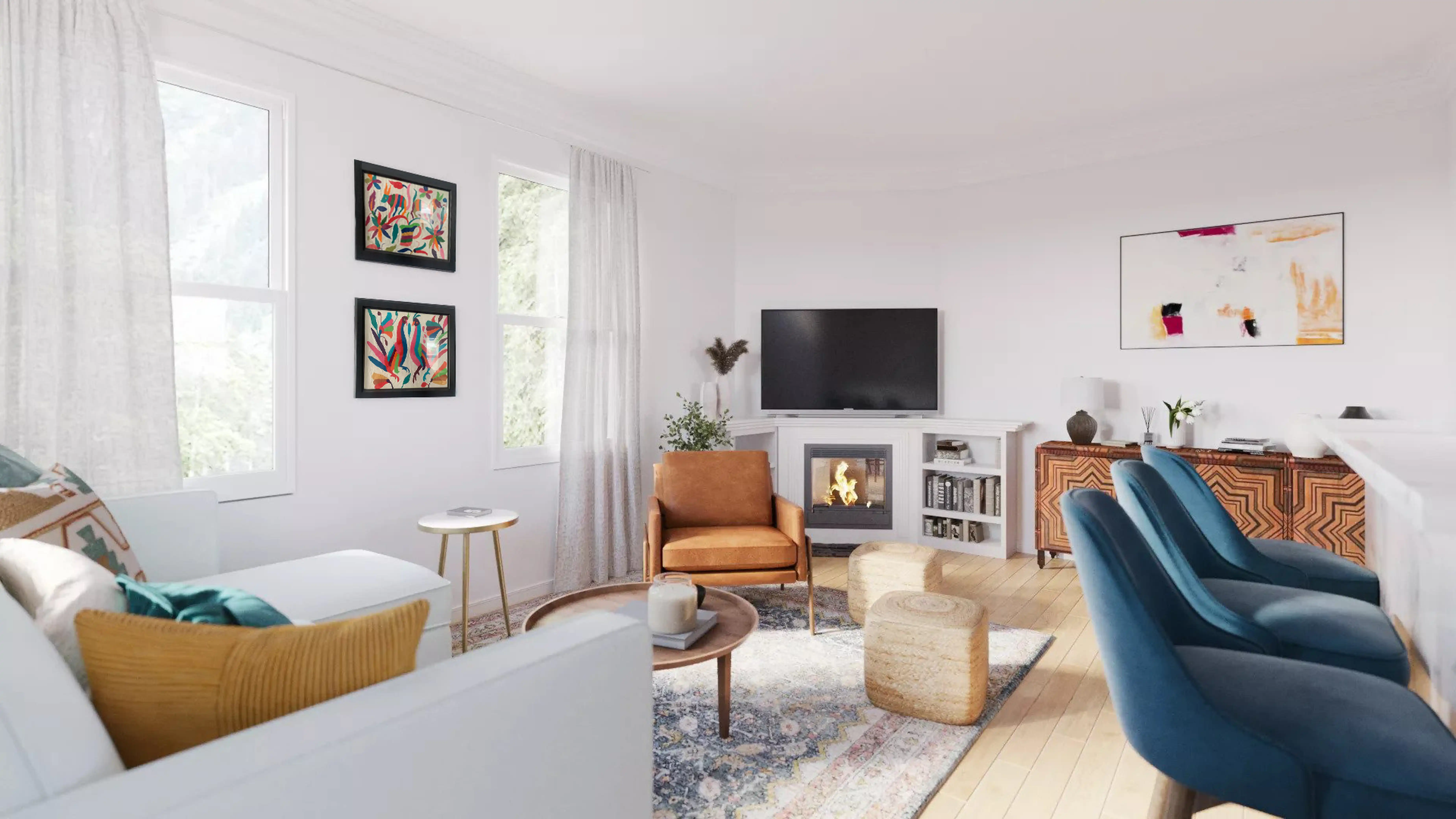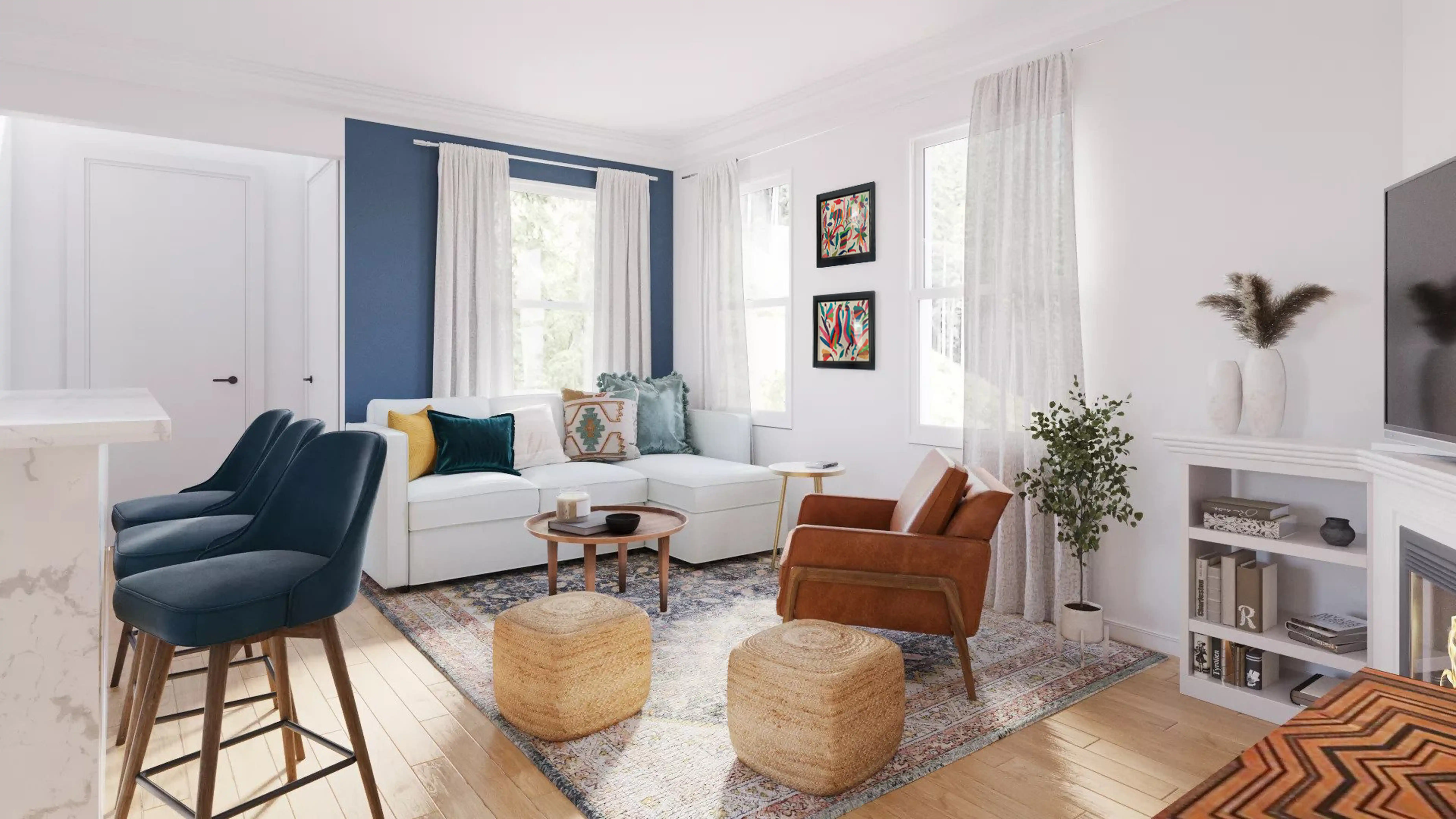 For this room, Carla selected poufs, folding chairs, and stools from Jaipur Living and West Elm. Discover Furniture design inspiration on Havenly.
