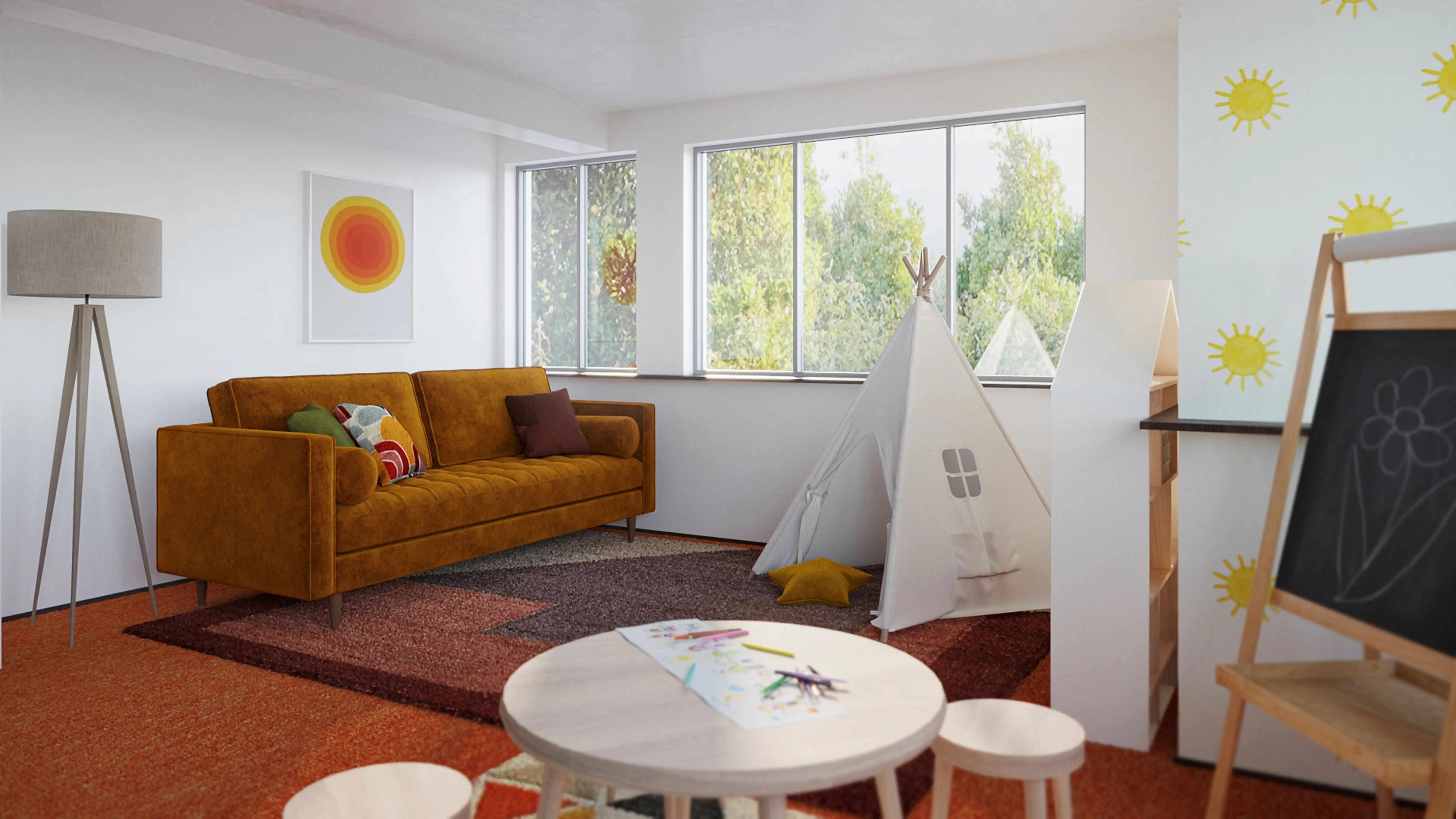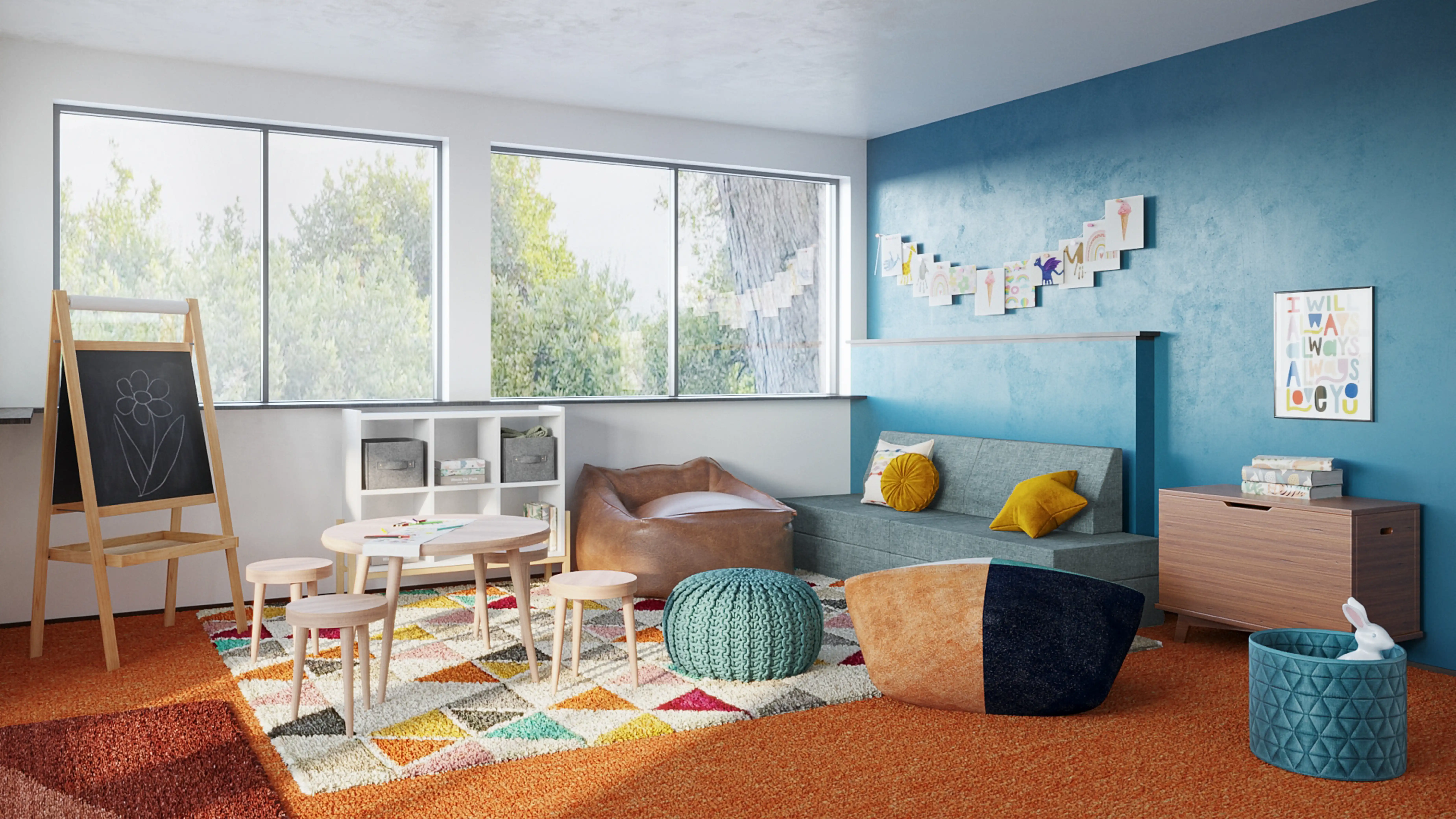 For this Playroom, Priscila selected poufs and sofas from Jaipur Living, Crate, and Kids. Discover Furniture design inspiration on Havenly.