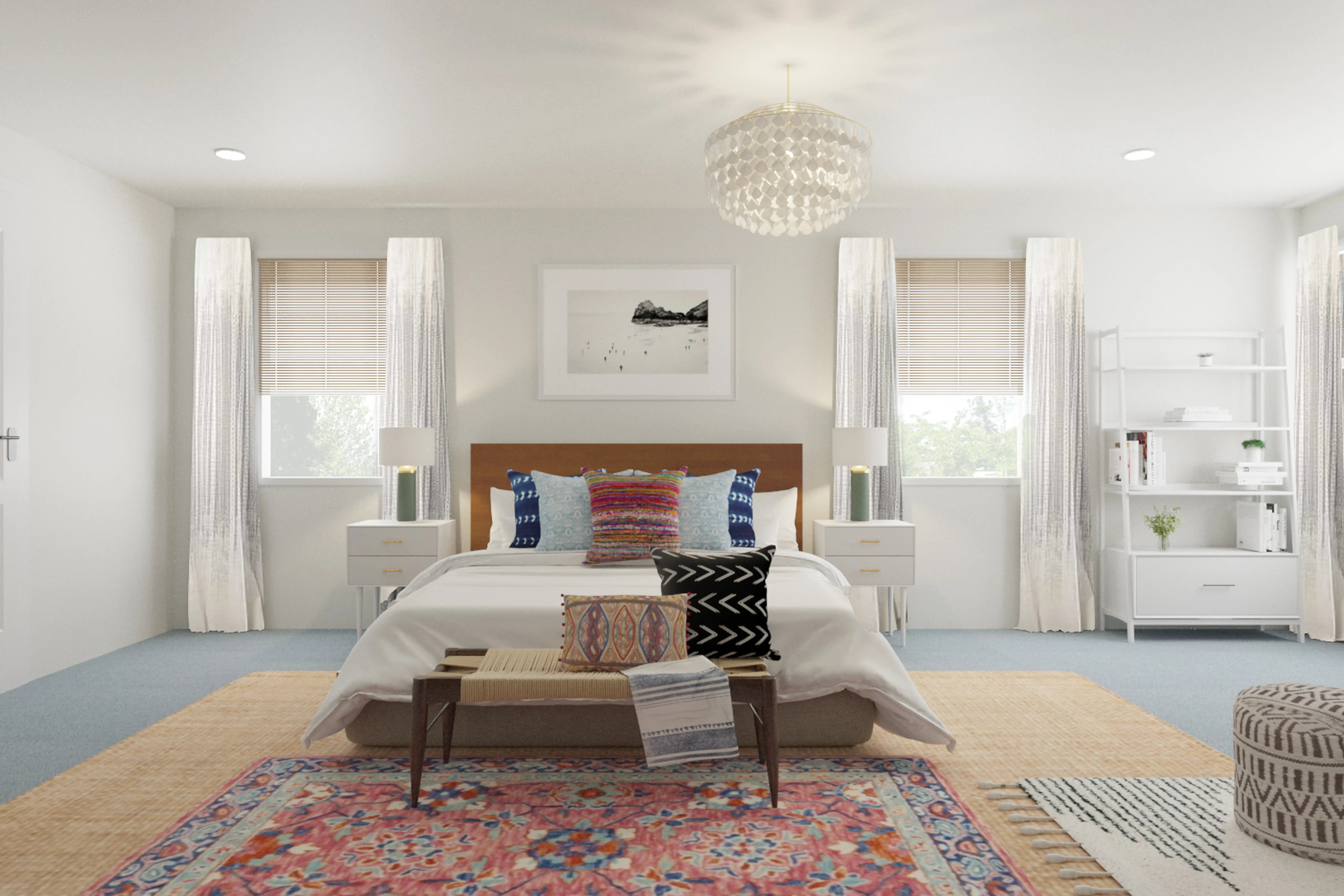 To brighten the design, Bohemian lamps and chandeliers were added to the room. Discover Lighting design inspiration on Havenly.