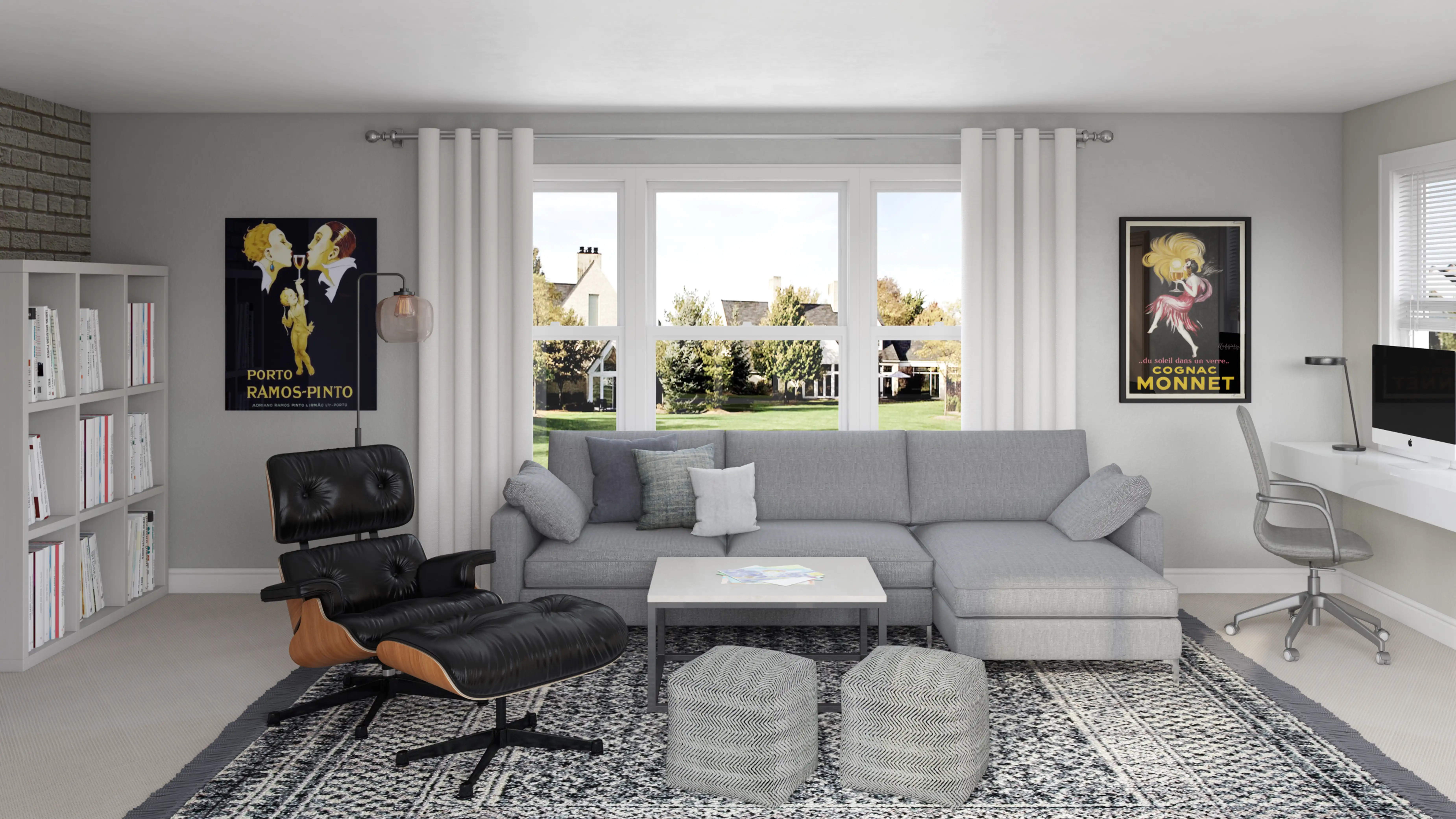 For this Living Room, Stacy selected ottomans, media storage cabinets, and racks from AllModern and Wayfair. Discover Furniture design inspiration on Havenly.