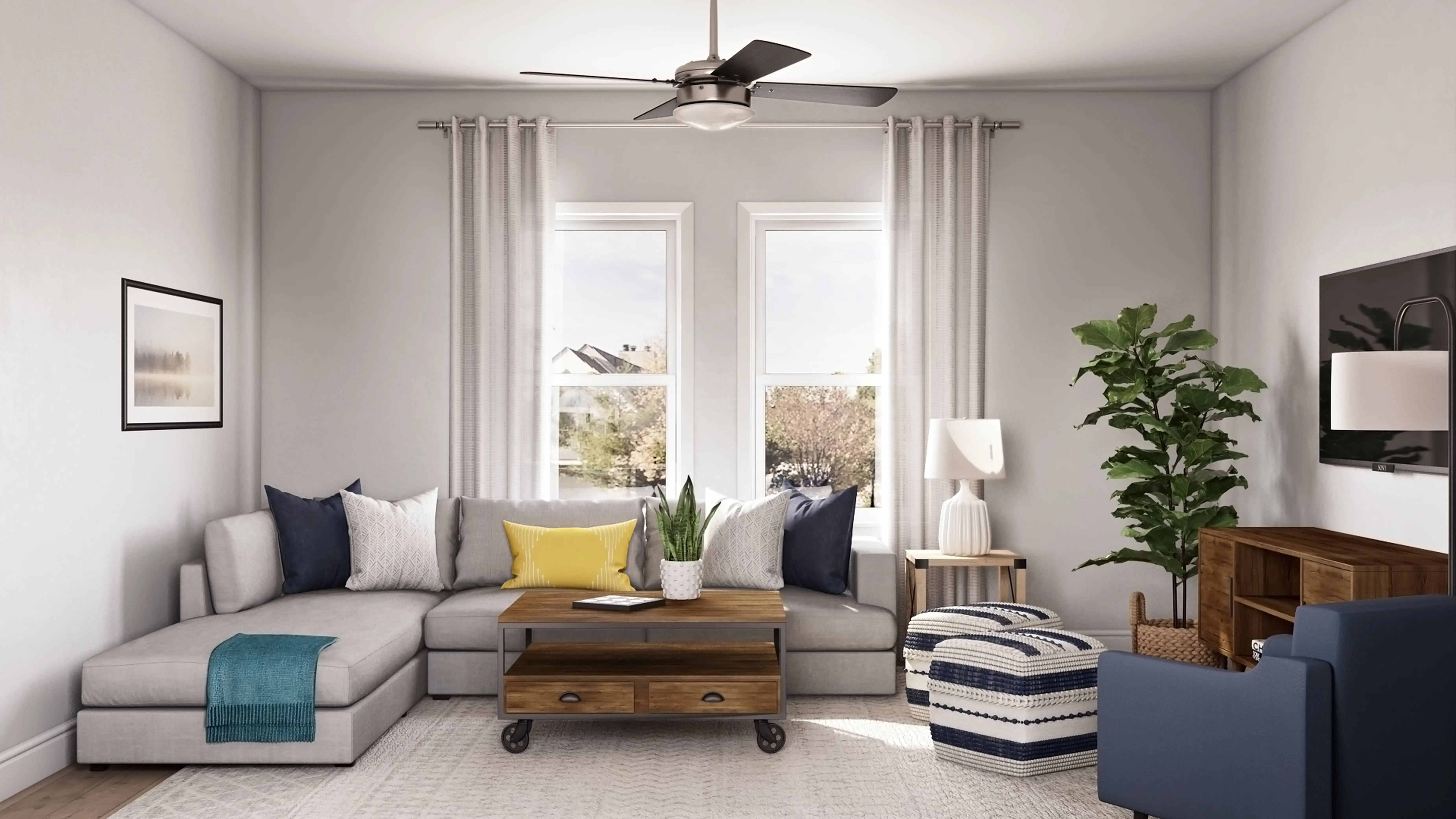 For this Living Room, Tara selected ottomans and end tables from Wayfair and Burrow. Discover Furniture design inspiration on Havenly.