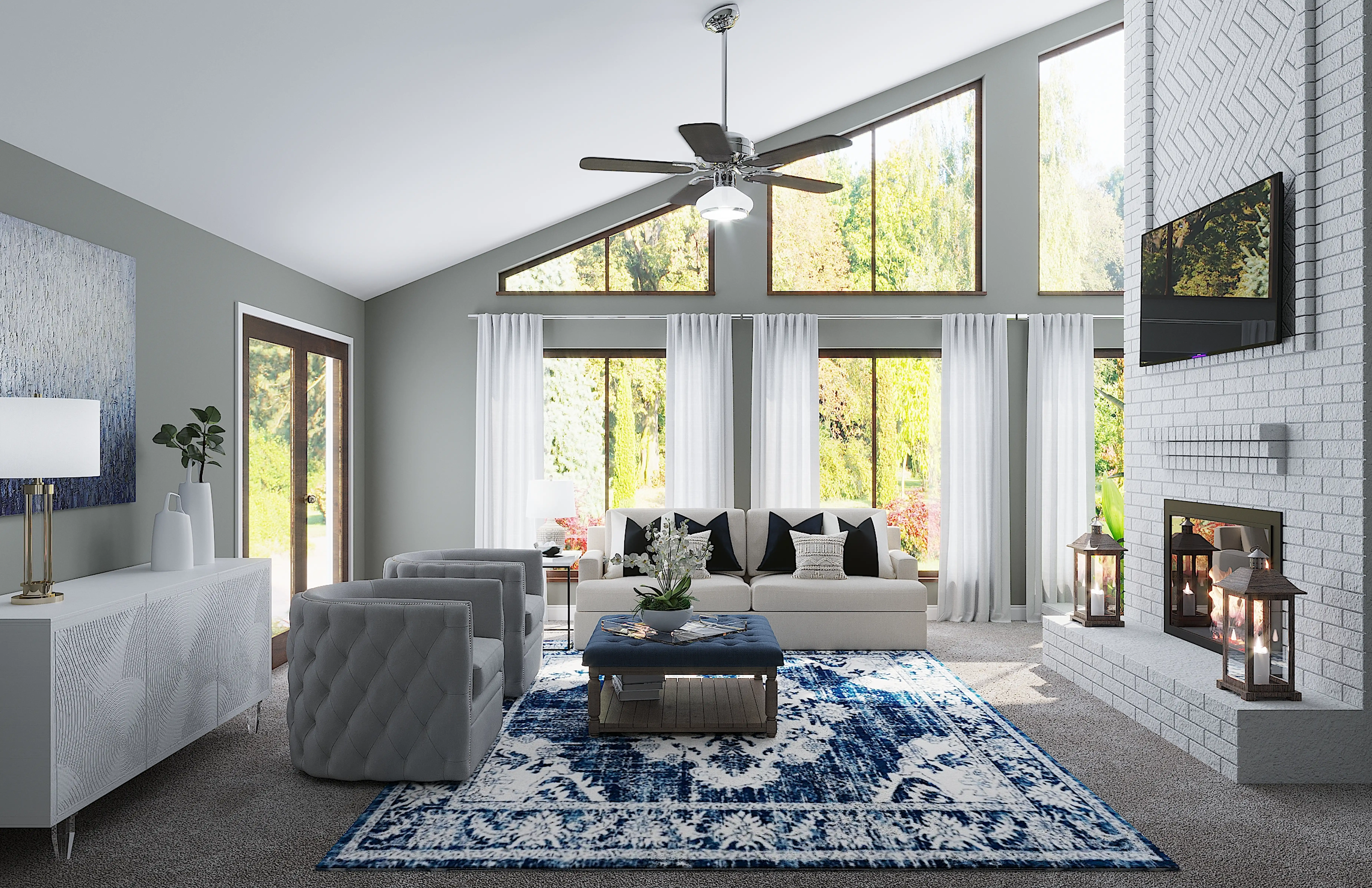 The rug in this space from Perigold helps add a variety of colors to the room. Discover Rug design inspiration on Havenly.