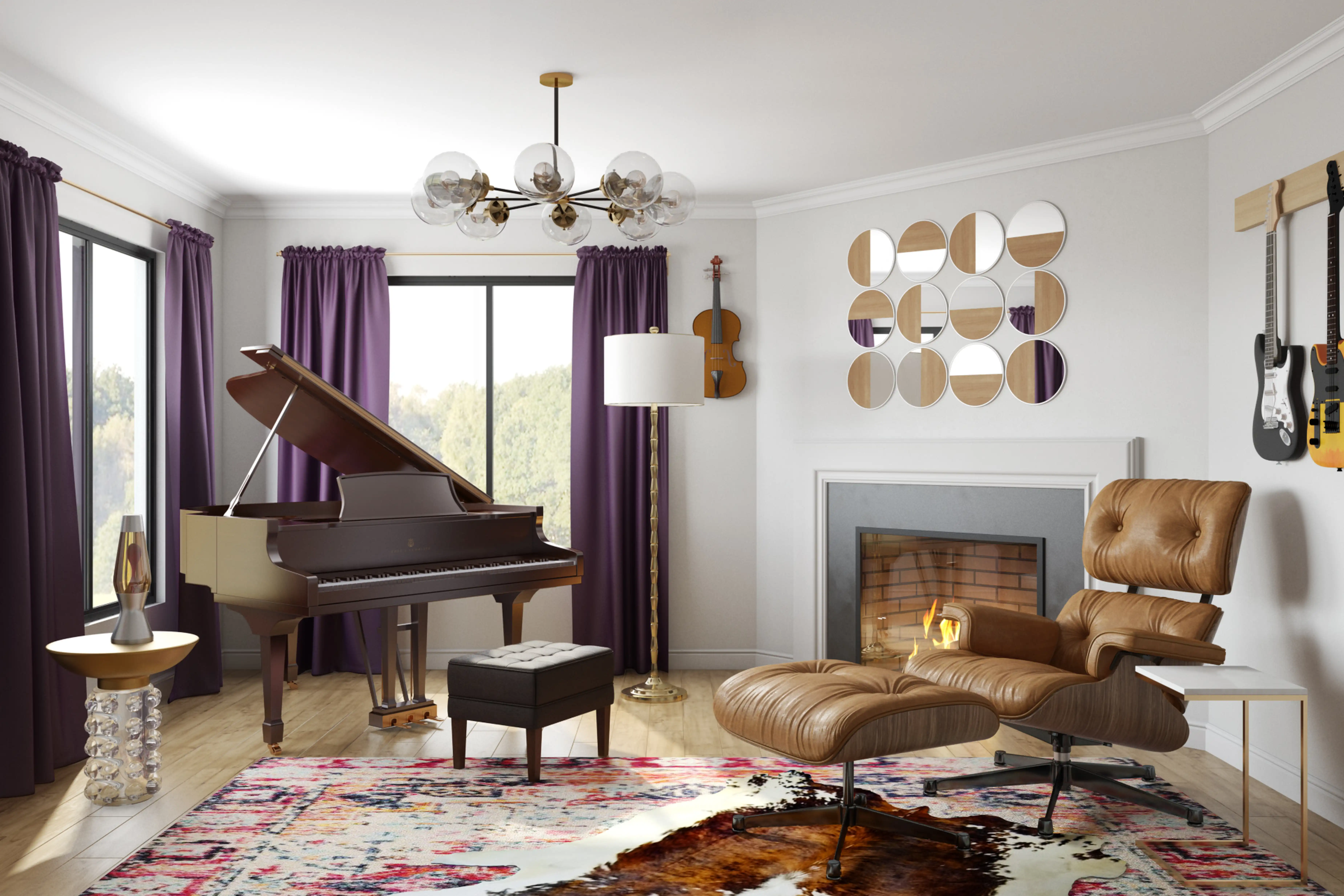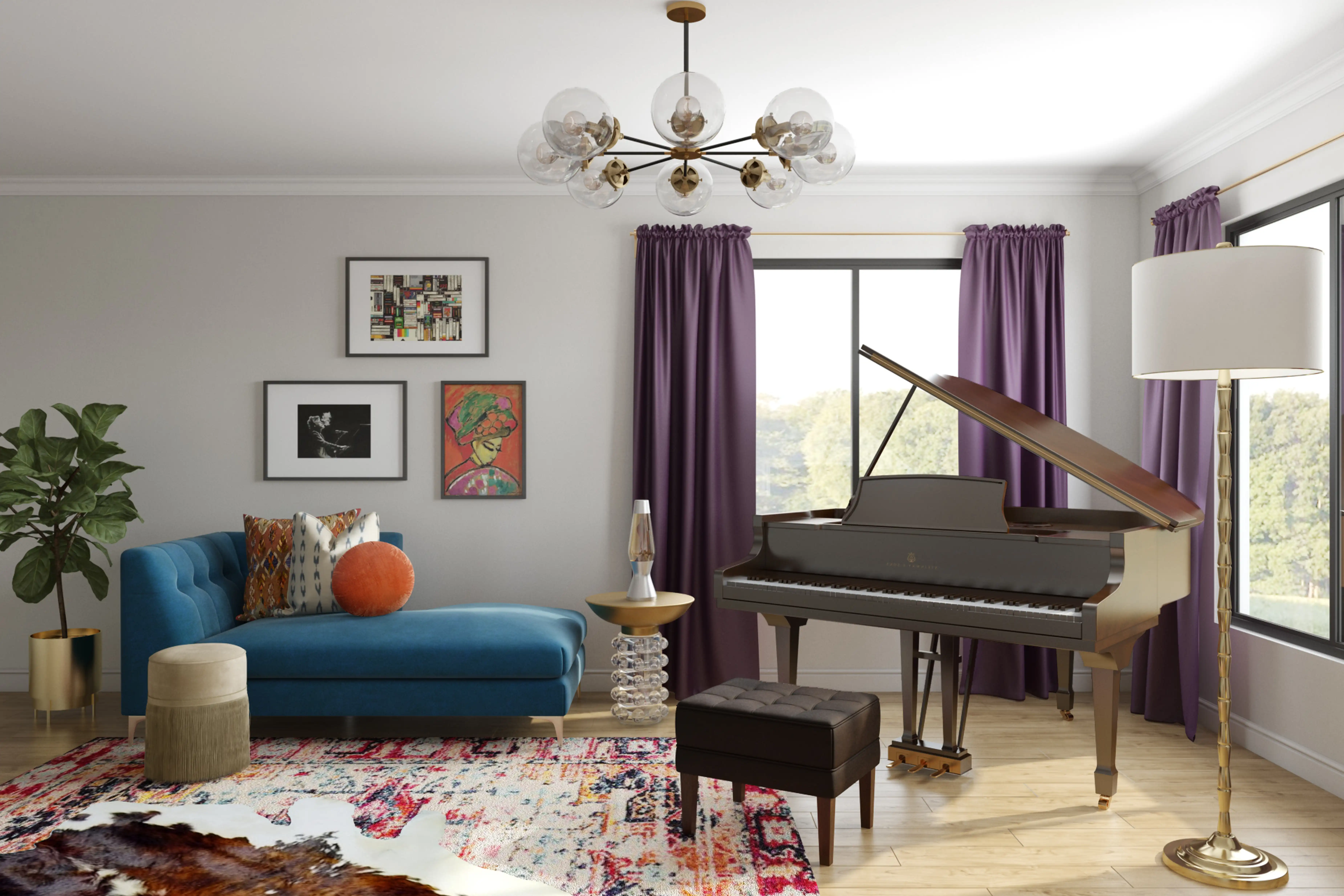 To brighten the design, Eclectic lamps and chandeliers were added to the room. Discover Lighting design inspiration on Havenly.