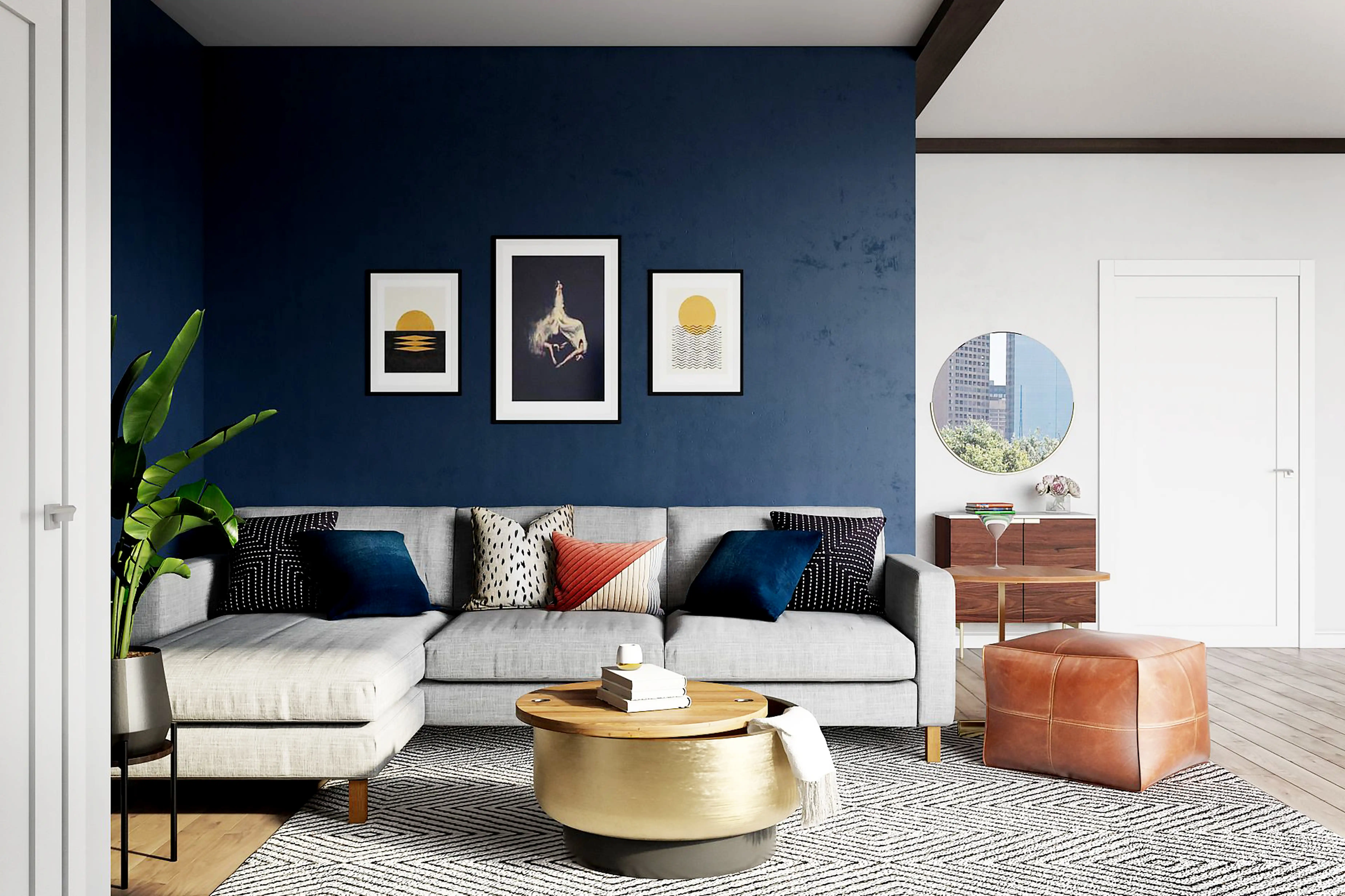 For this Living Room, Katerina selected poufs and end tables from CB2 and West Elm. Discover Furniture design inspiration on Havenly.