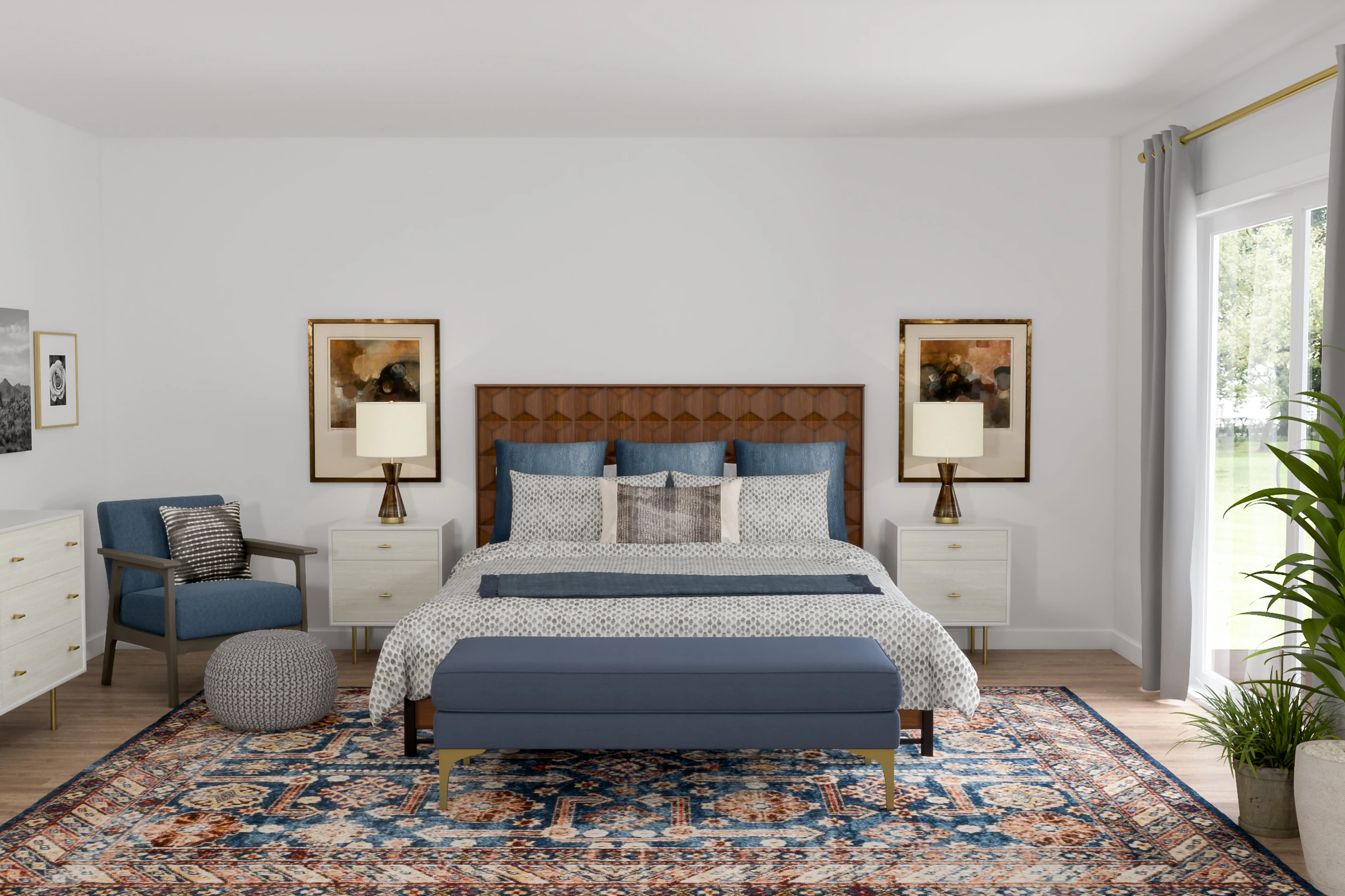 For this Bedroom, Lisa selected poufs and dressers from CB2 and West Elm. Discover Furniture design inspiration on Havenly.