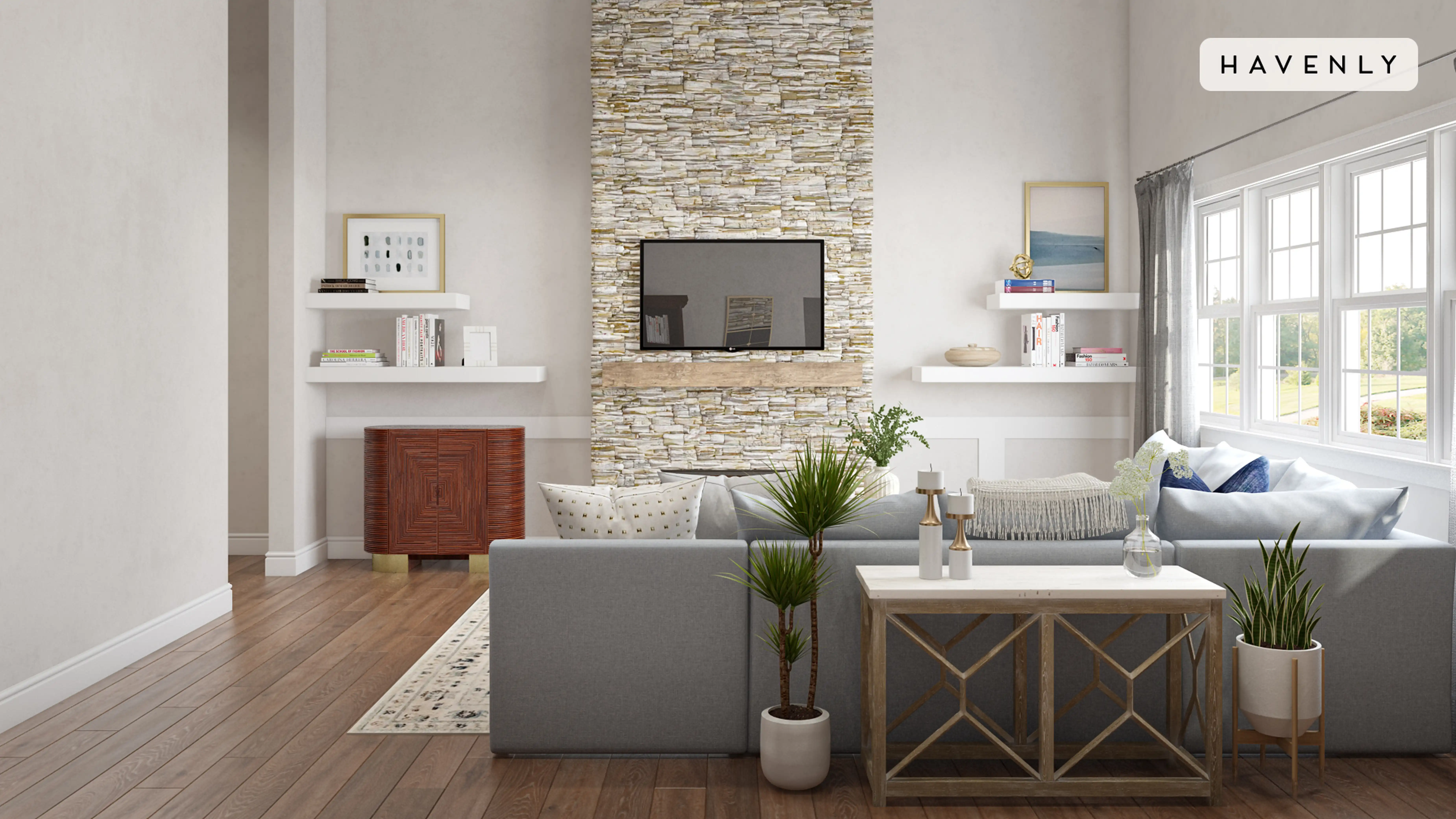 For this Living Room, Alex selected accent tables and end tables from Uttermost and West Elm. Discover Furniture design inspiration on Havenly.