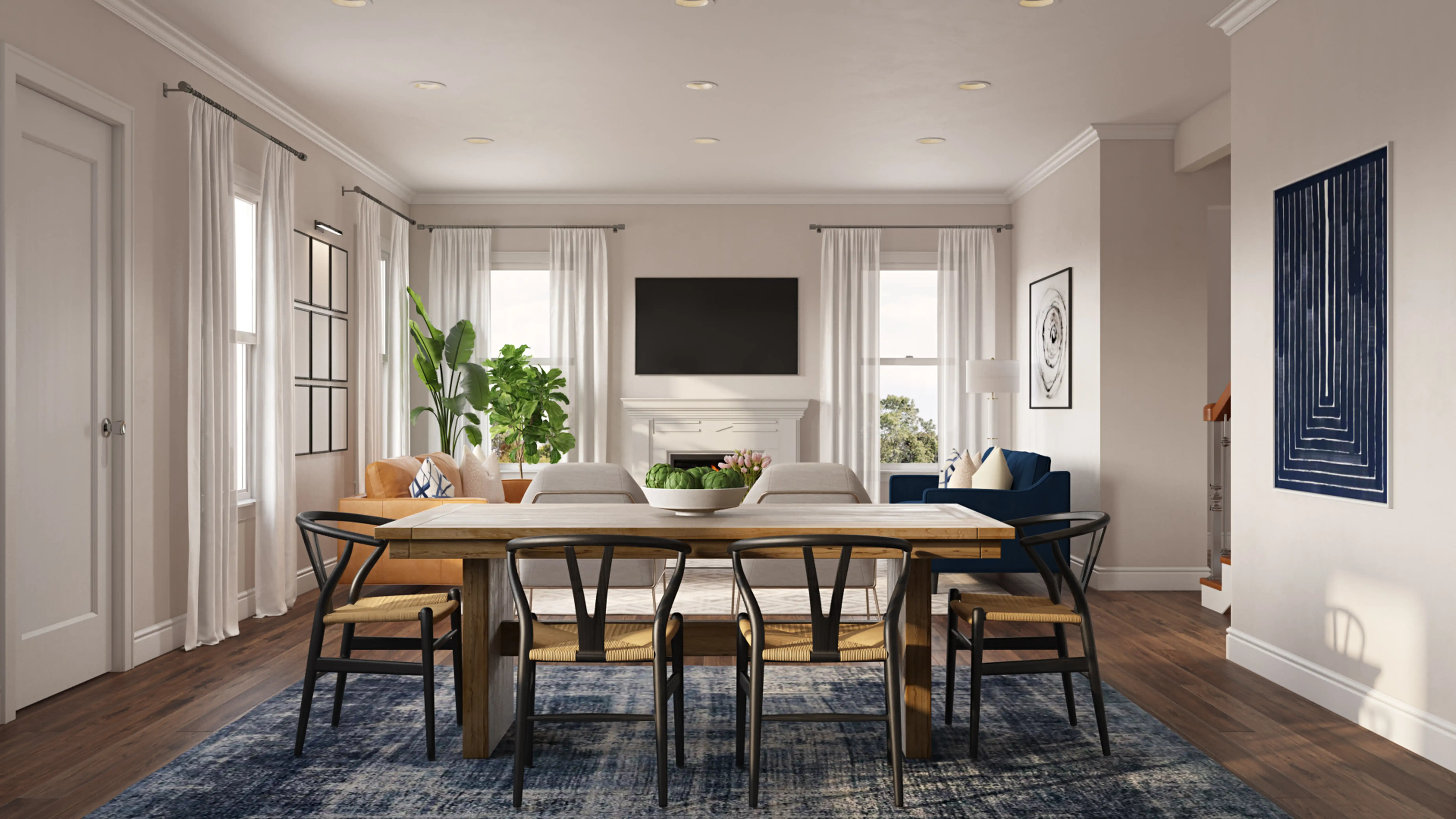 For this Living Room, Dani selected coffee tables, kitchen, and dining room tables from West Elm and Wayfair. Discover Furniture design inspiration on Havenly.