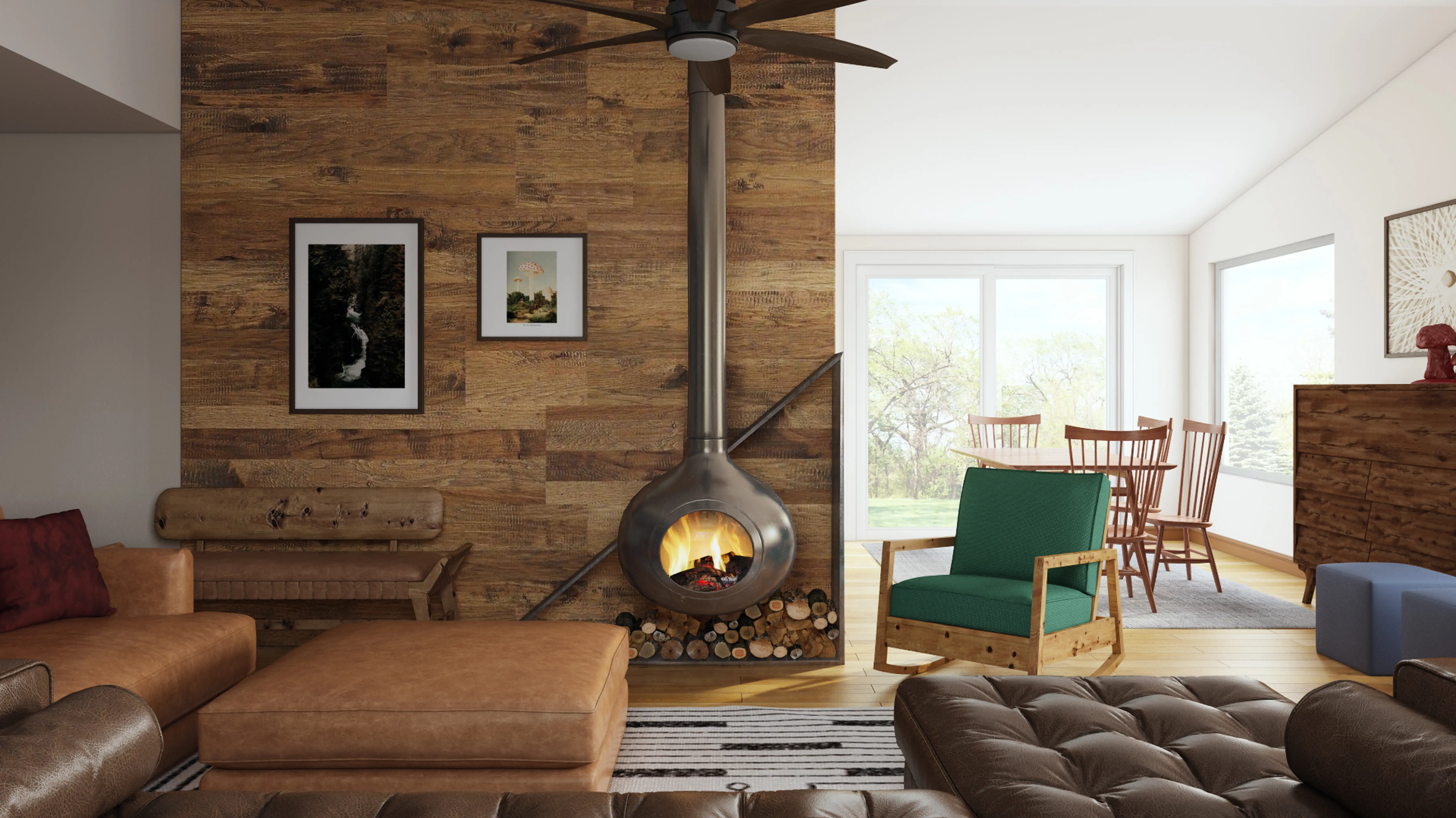 To brighten the design, Rustic ceiling light fixtures and lamps were added to the room. Discover Lighting design inspiration on Havenly.