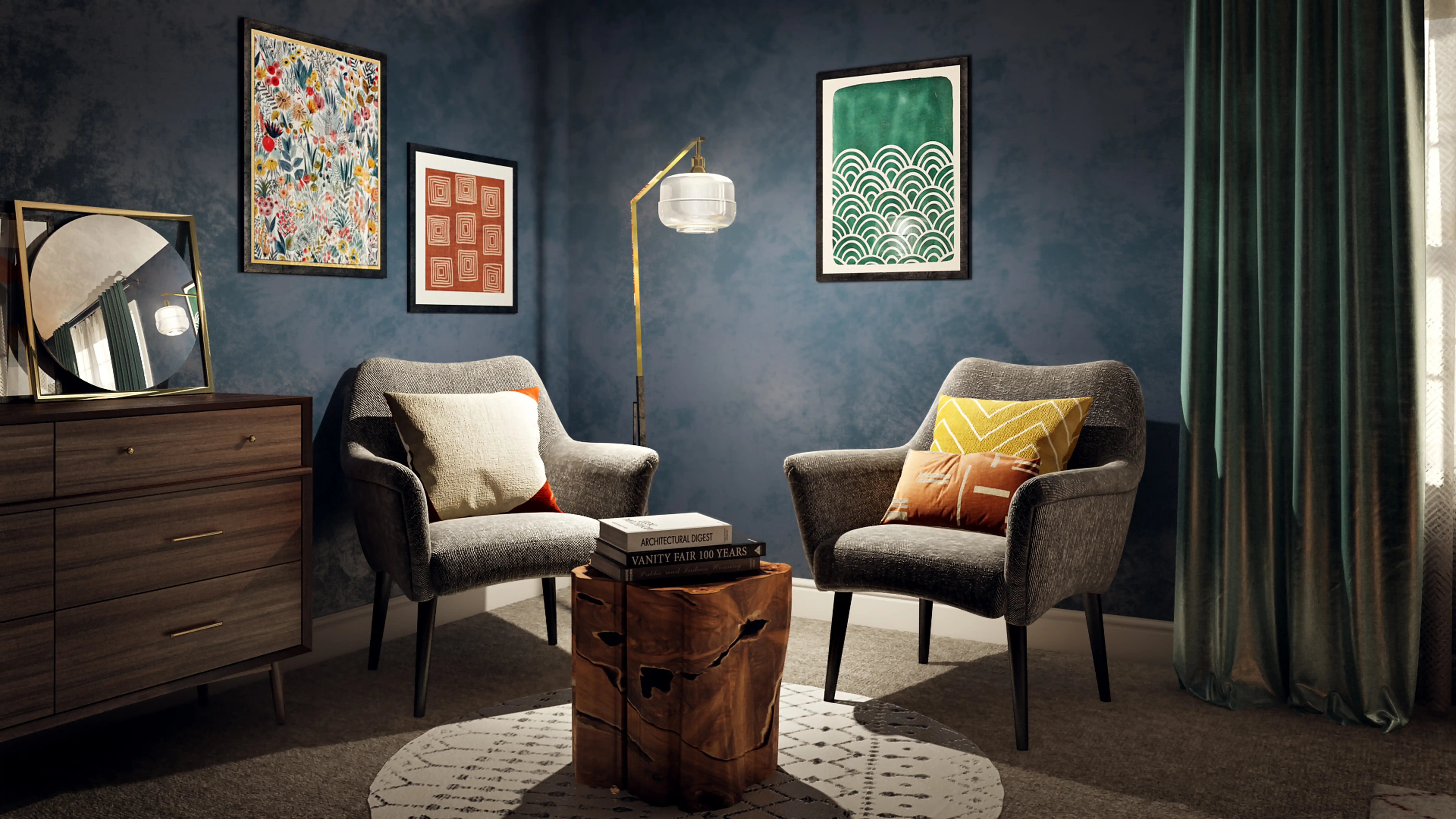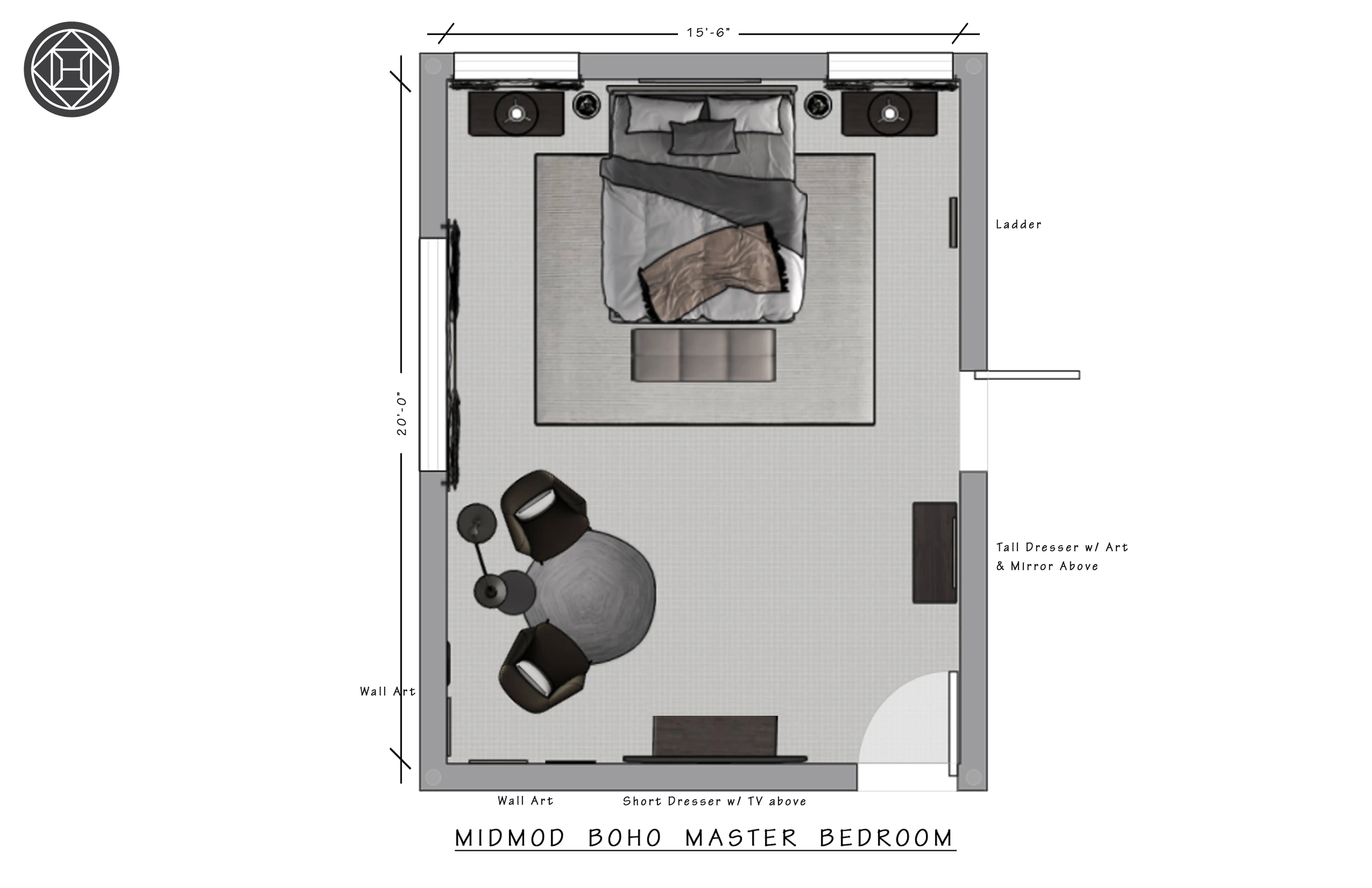 For this Bedroom, Patrice selected end tables and chairs from Williams Sonoma and Wayfair. Discover Furniture design inspiration on Havenly.