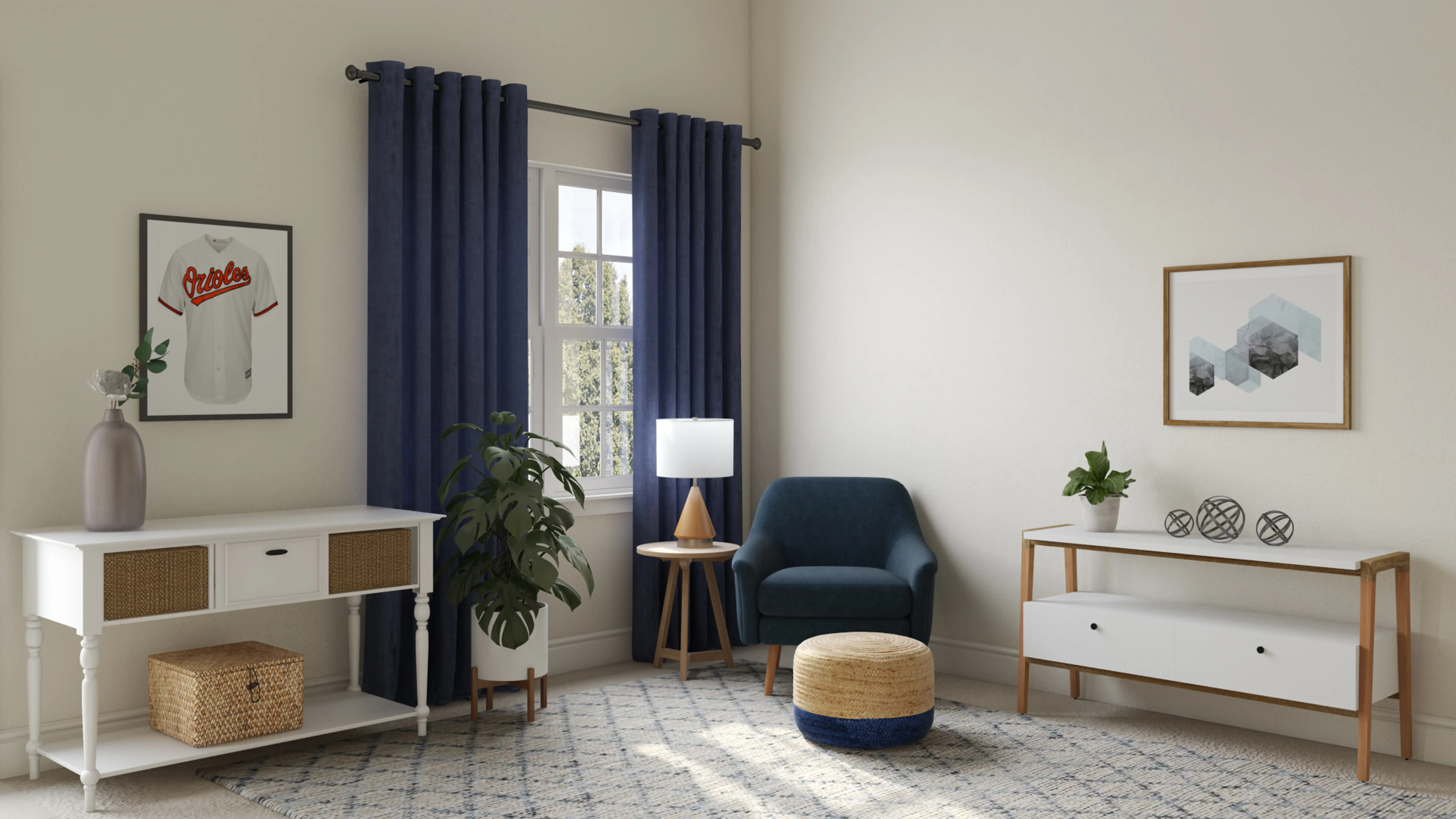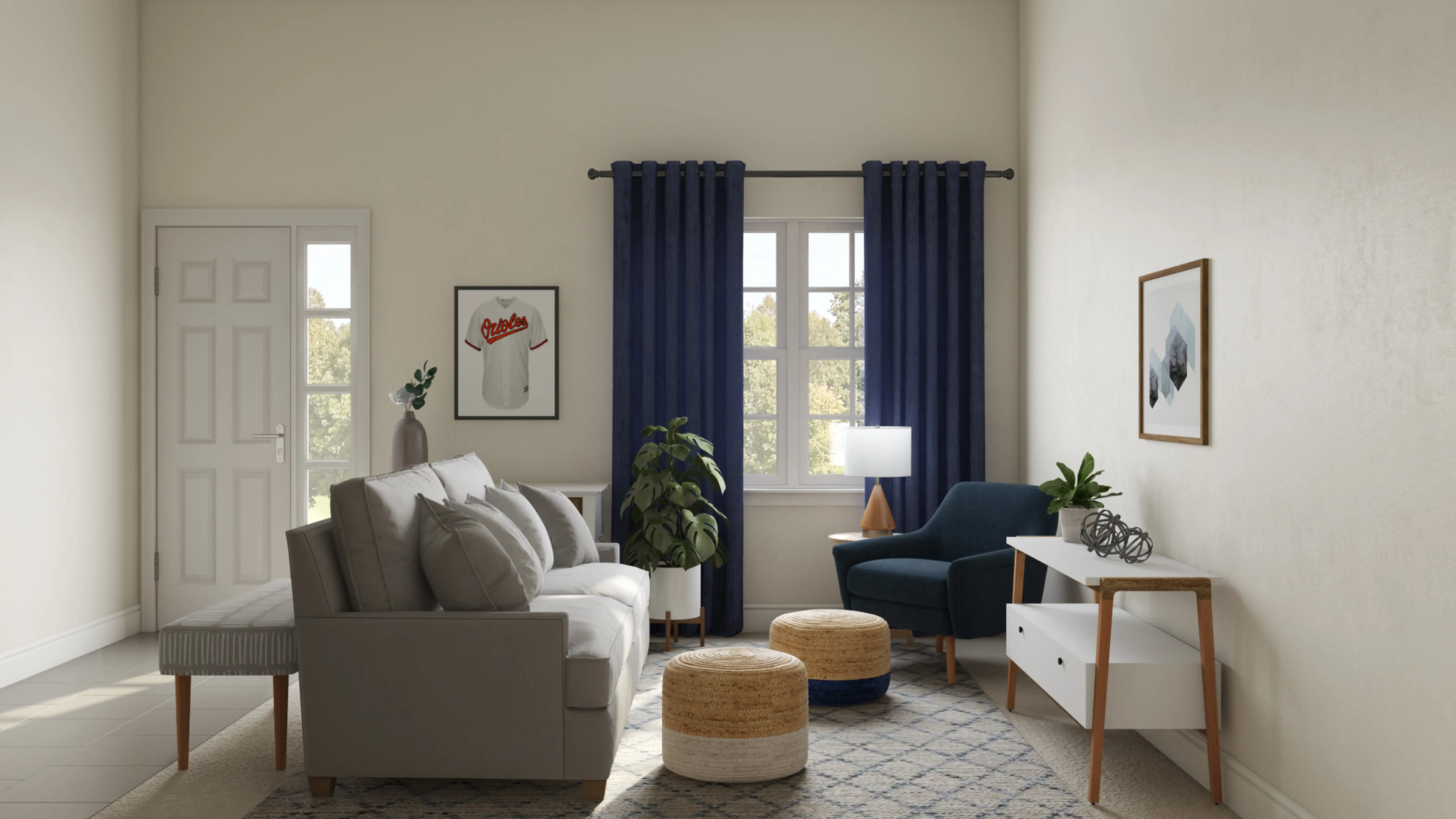 For this Living Room, Sarah selected media storage cabinets, racks, arm chairs, recliners, and sleeper chairs from West Elm and Safavieh. Discover Furniture design inspiration on Havenly.