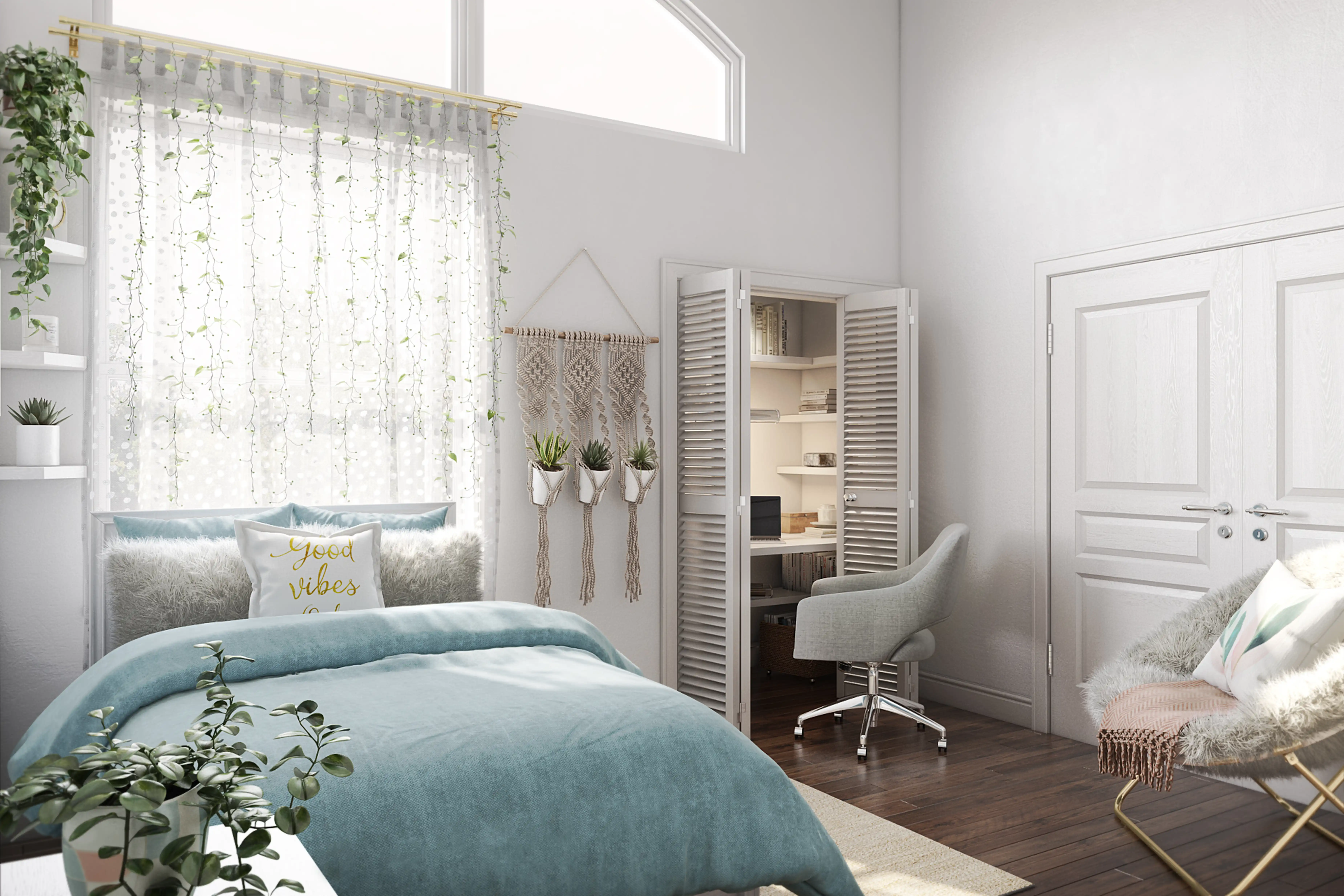 No room is complete without blankets and artificial flora! Mixing up 95% acrylic, 5% lurex, and plastic/ceramic with blush and green/white helps to add the finishing touches to the room. Discover Decor & Pillow design inspiration on Havenly.
